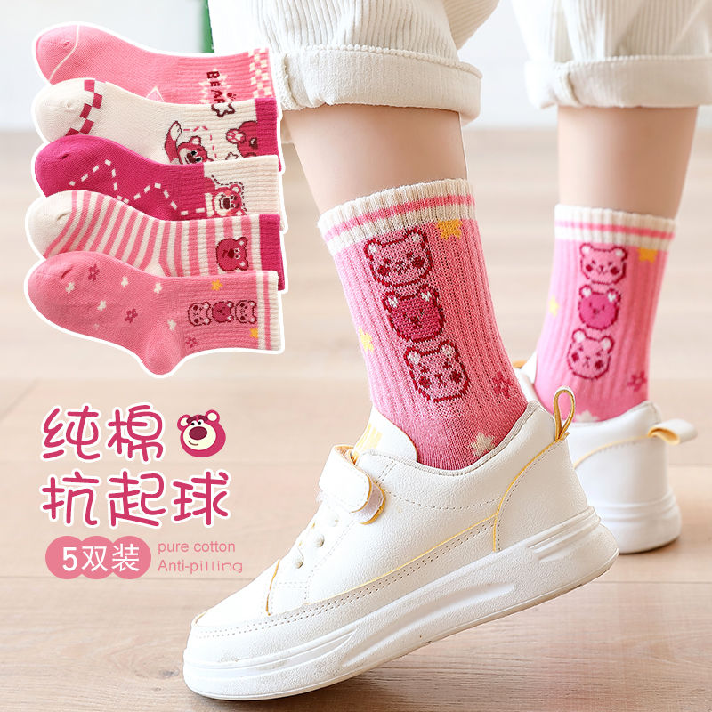 秋冬女袜2025新款 中筒袜女士袜子 粉色可爱少女卡通棉袜搭配小皮鞋
