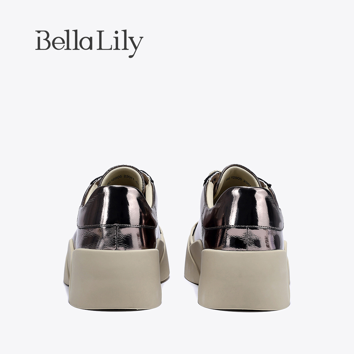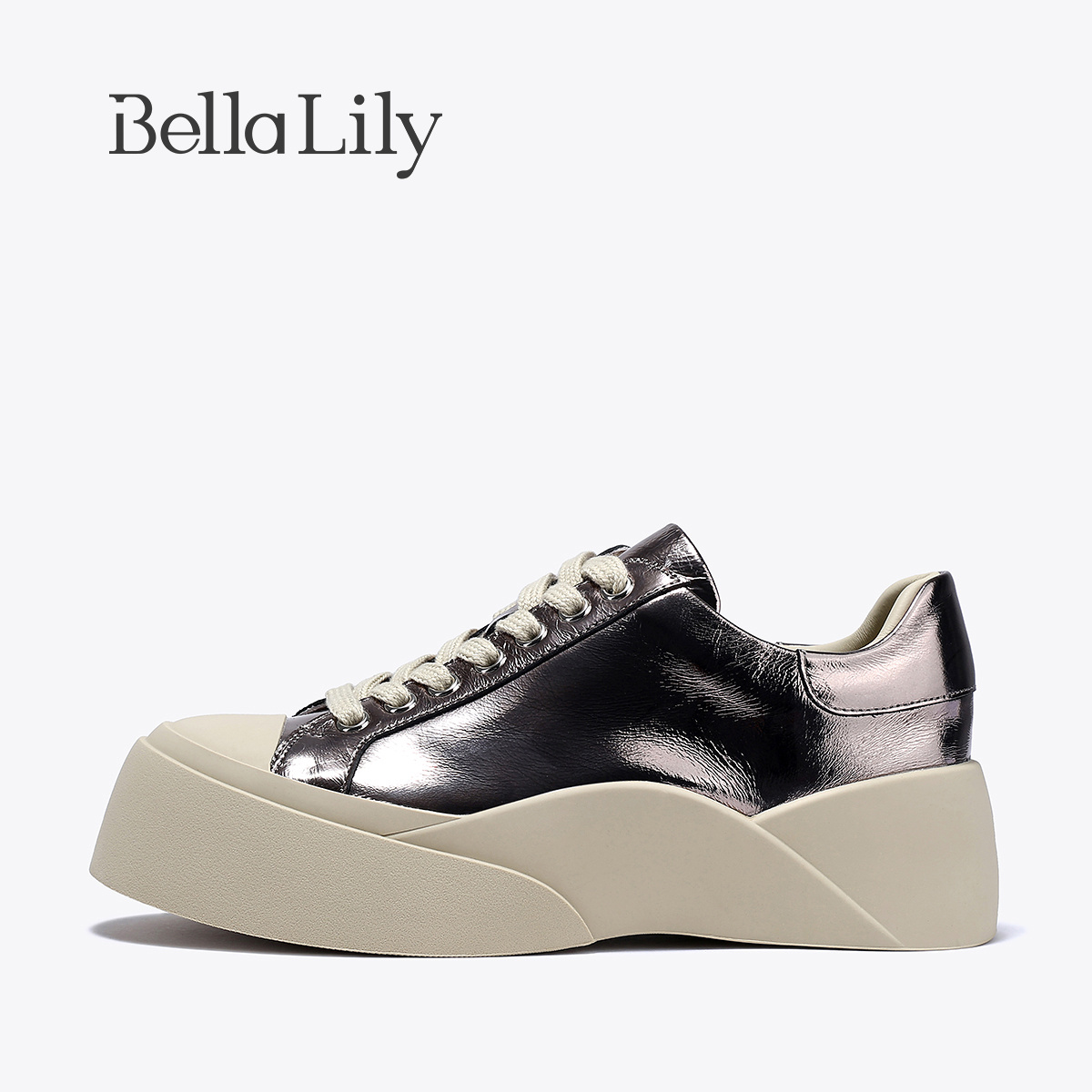 牛皮增高厚底鞋 女圆头休闲鞋 子 欧美风擦色潮鞋 BellaLily2025冬季