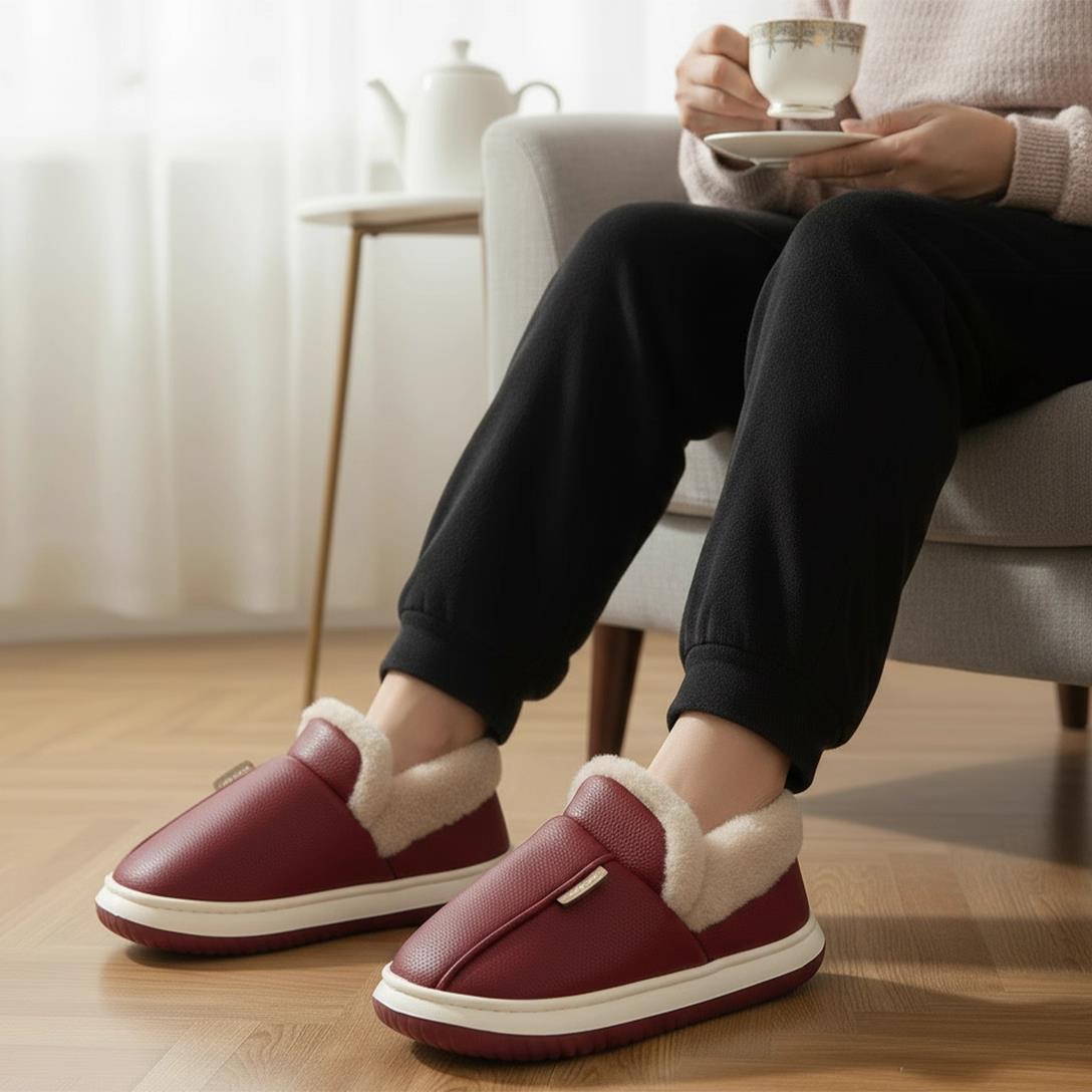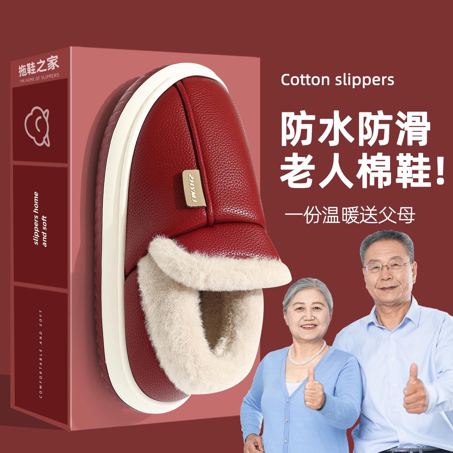 室内家居中老年防滑耐磨加绒保暖外穿棉鞋 2025新款 女款 防水棉拖鞋