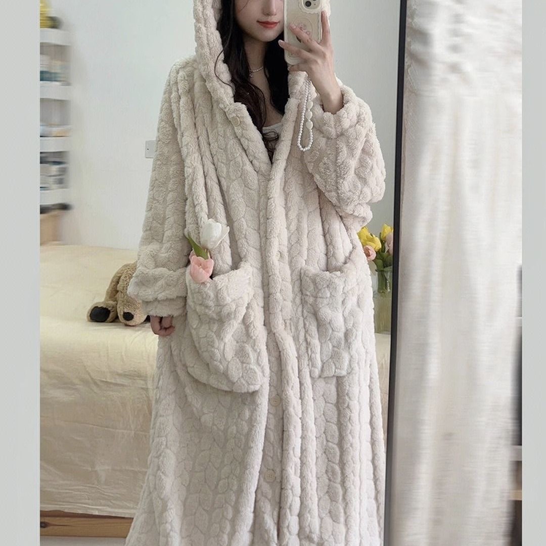 睡袍法兰绒加厚宽松学生家居服2025新款 秋冬季 睡衣女珊瑚绒中长款