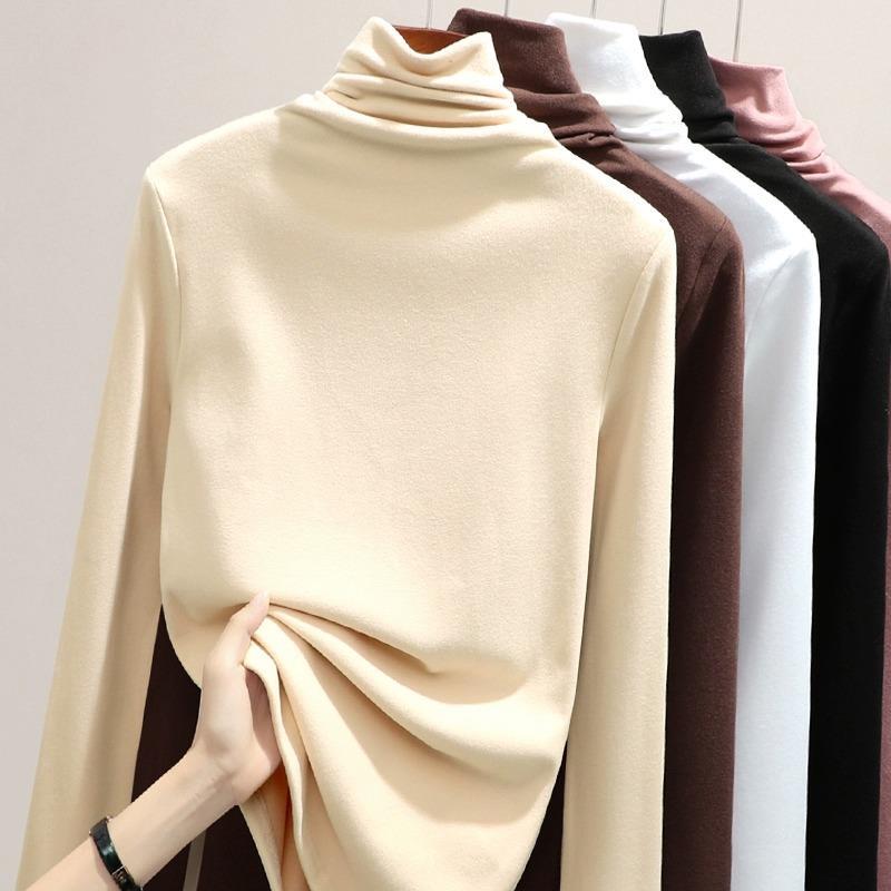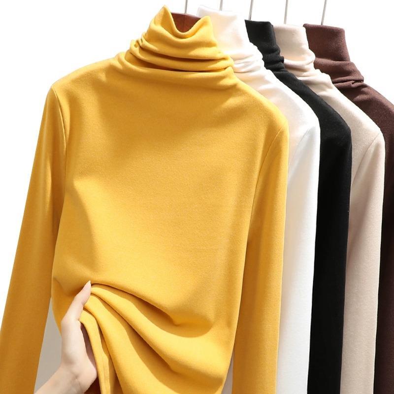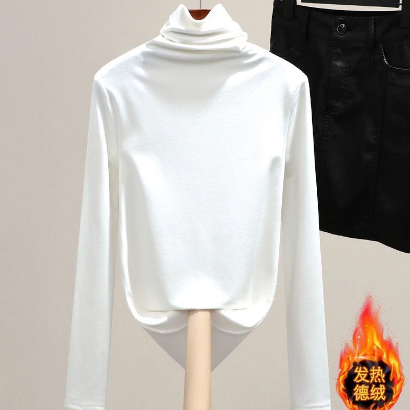 保暖低领打底衫 T恤v领秋冬修身 半开领白色上衣 女长袖 蕉下亨利衫