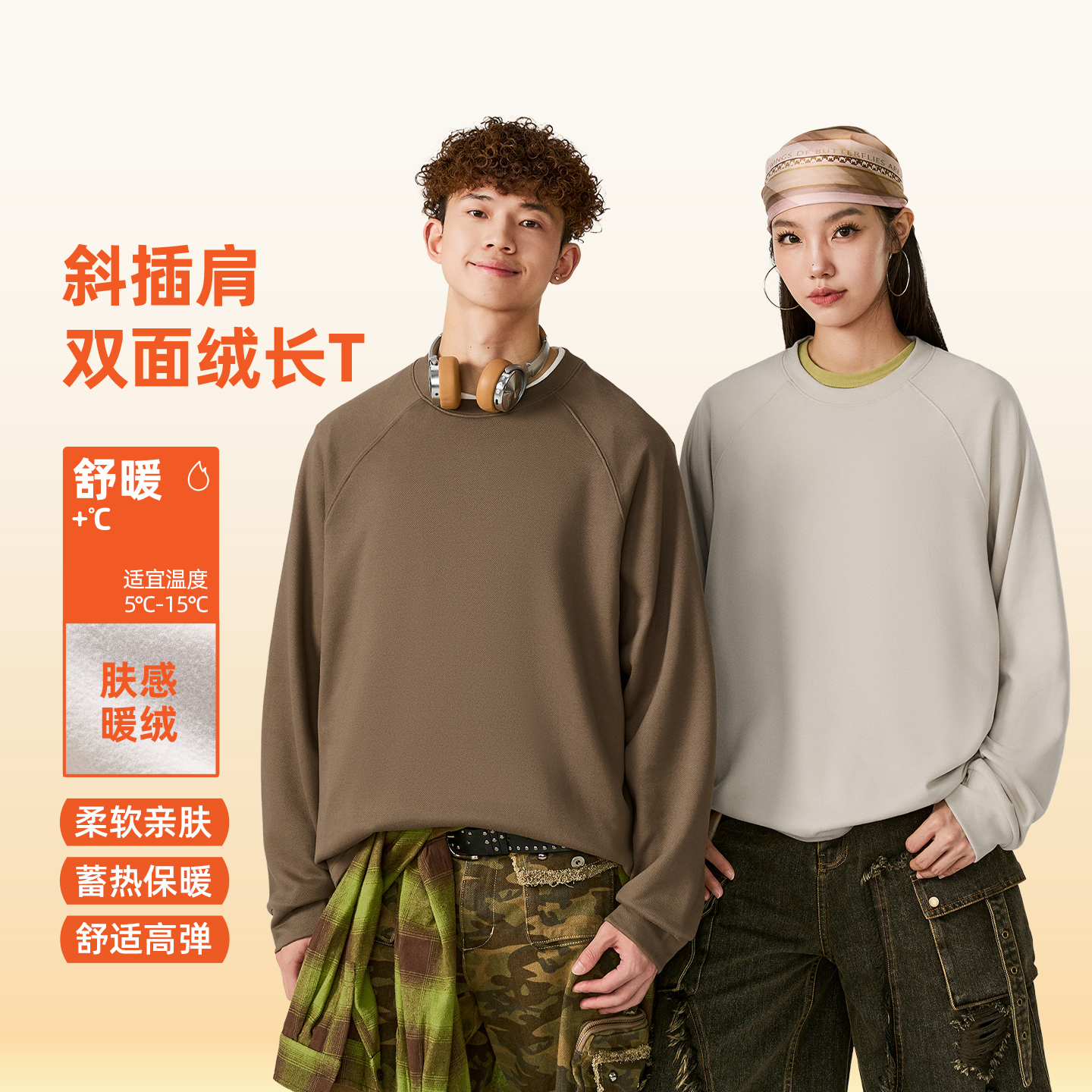 男生蓄热保暖圆领上衣A 休闲插肩打底衫 回力加绒长袖 t恤男秋冬新款