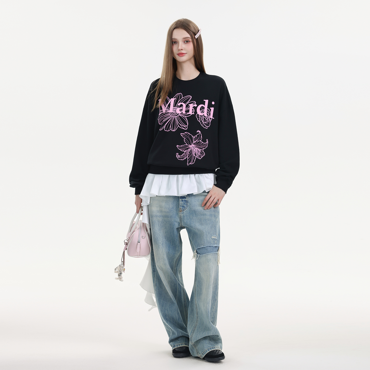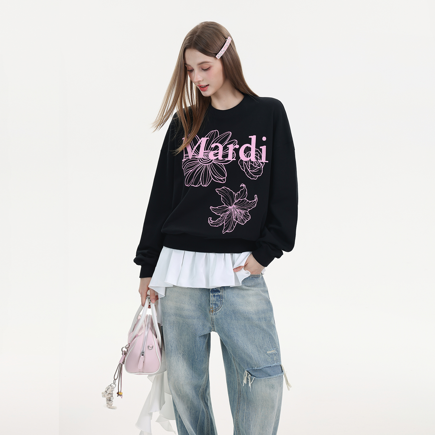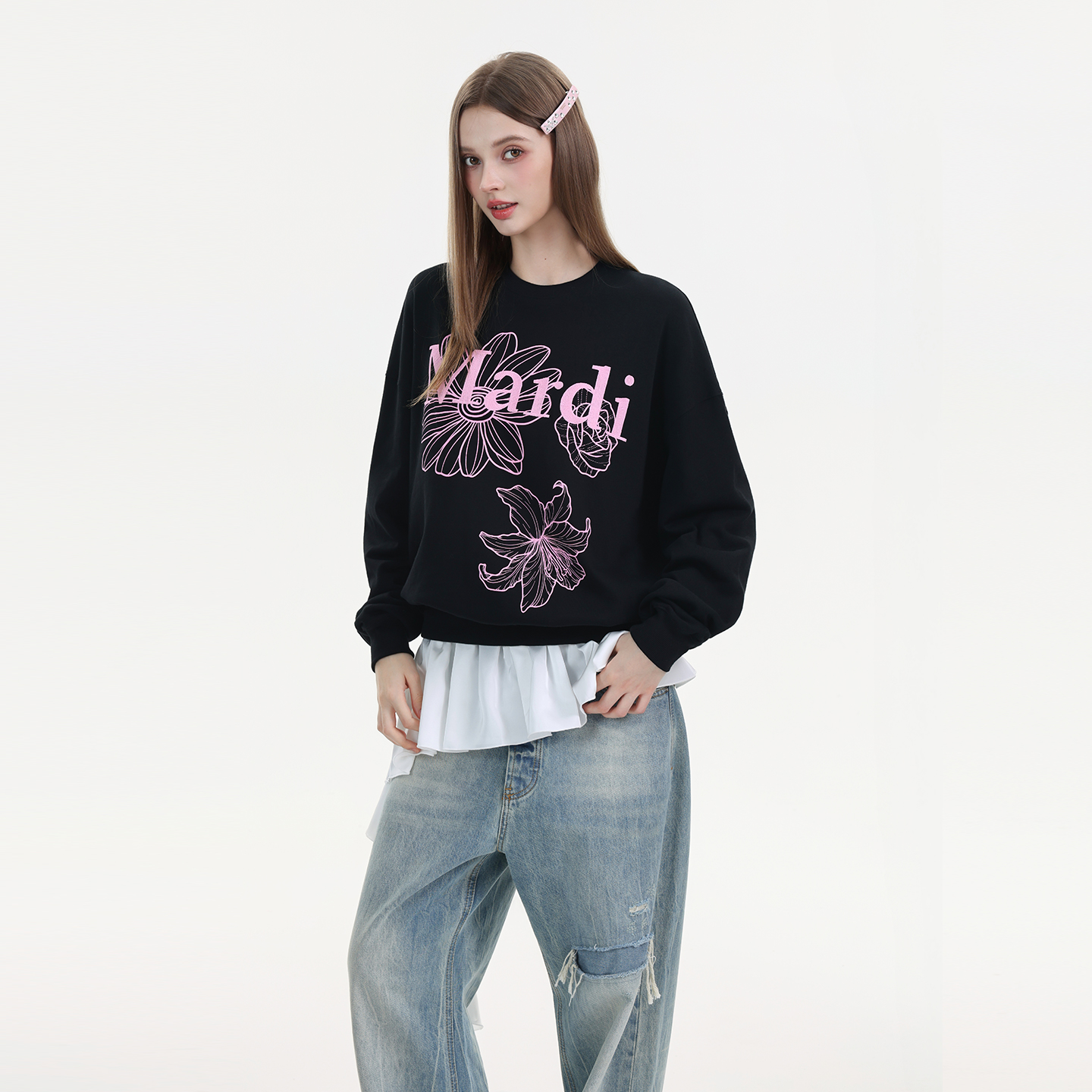 Mardi三花logo重磅纯棉圆领休闲卫衣25秋冬新款 套头印花上衣 长袖