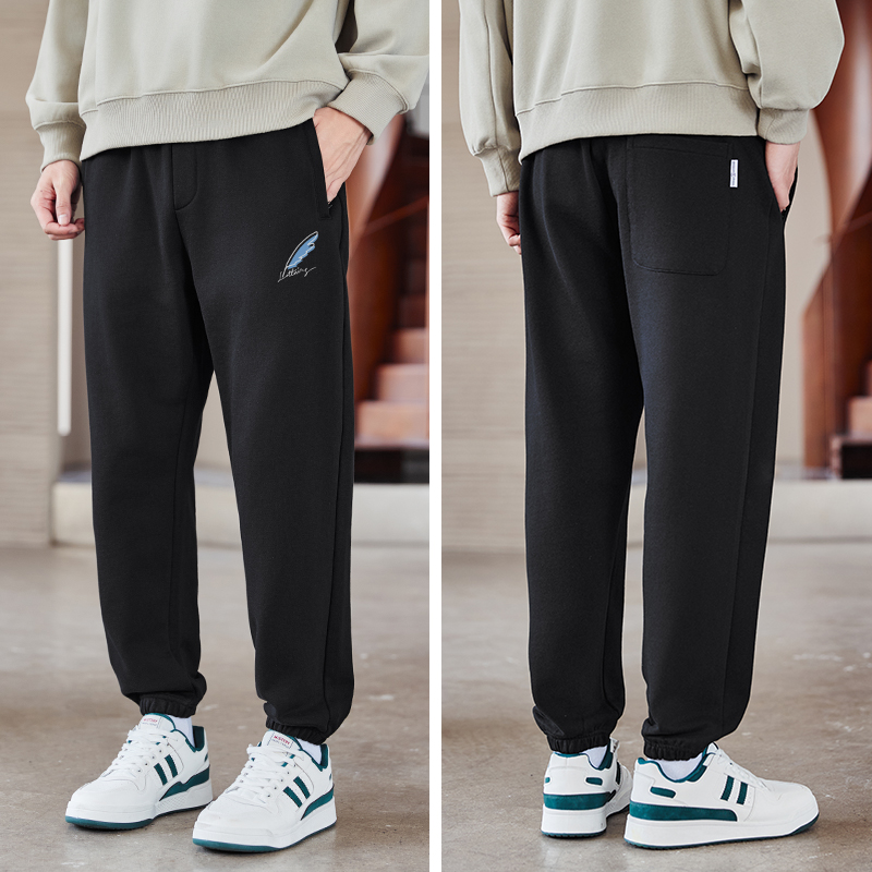痞帅羽毛印花长裤 TEEK2025秋季 青少年运动美式 休闲潮牌卫裤 子 男装