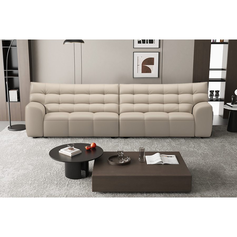 法莎蒂意式 极简皮艺直排棉花糖沙发 极简拉扣真皮沙发小户型意式