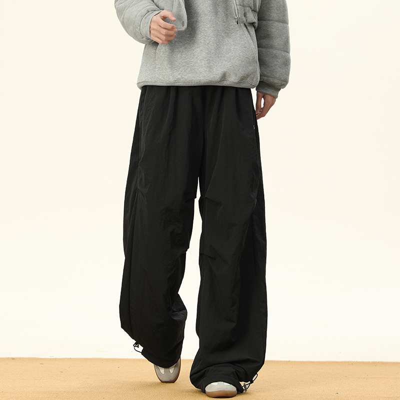 宽松阔腿褶皱弯刀裤 迈特优美式 女男秋冬加厚棉裤 裤 子 加绒伞兵工装