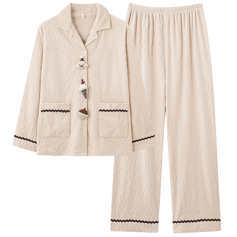 可外穿家居服 宽松大码 都市丽人空气棉睡衣女加厚夹层秋冬新款 长袖