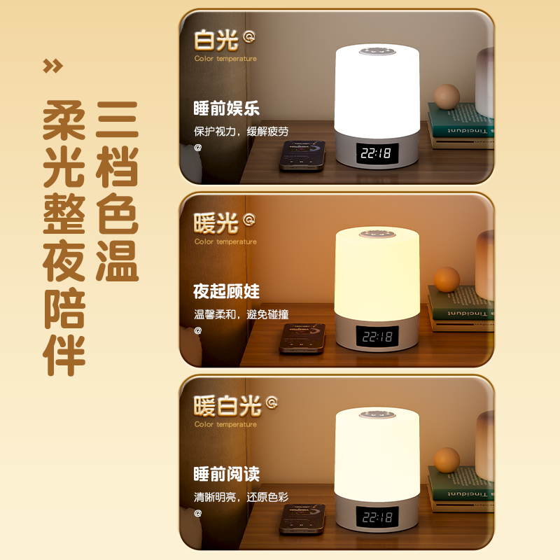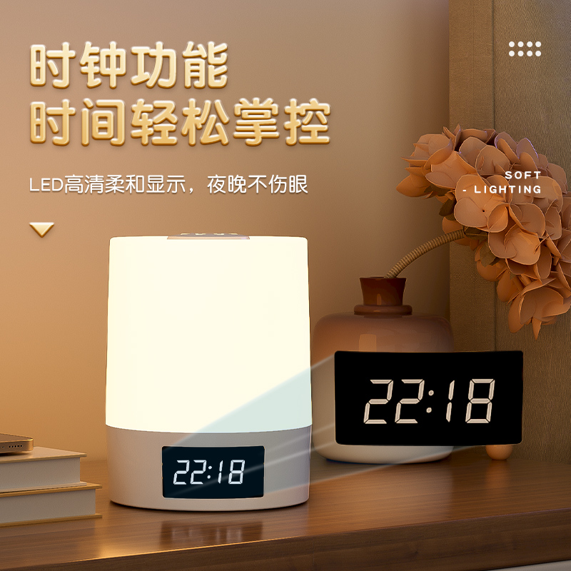 柔光卧室LED声控灯感应床头灯人工语音控制小夜灯智能USB插电台语音小夜灯