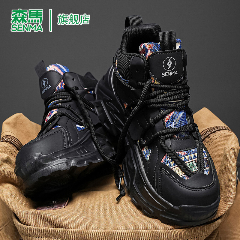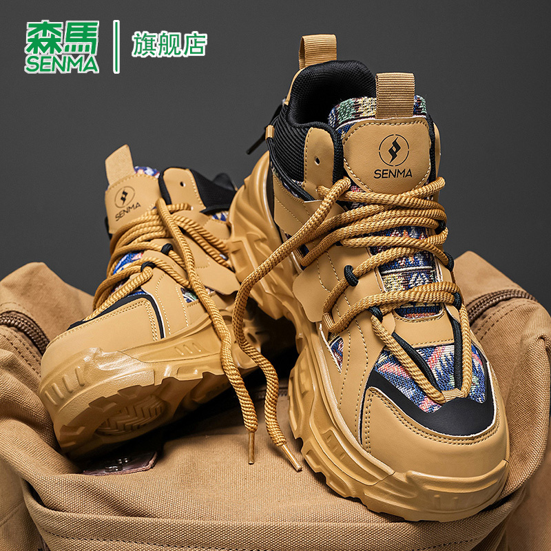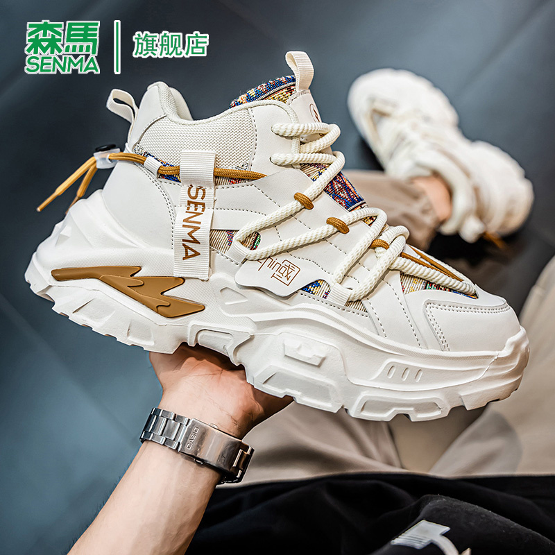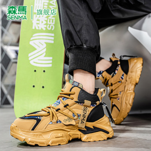 靴子 真皮防水厚底增高工装 森马马丁靴男秋季 高帮百搭休闲白色板鞋