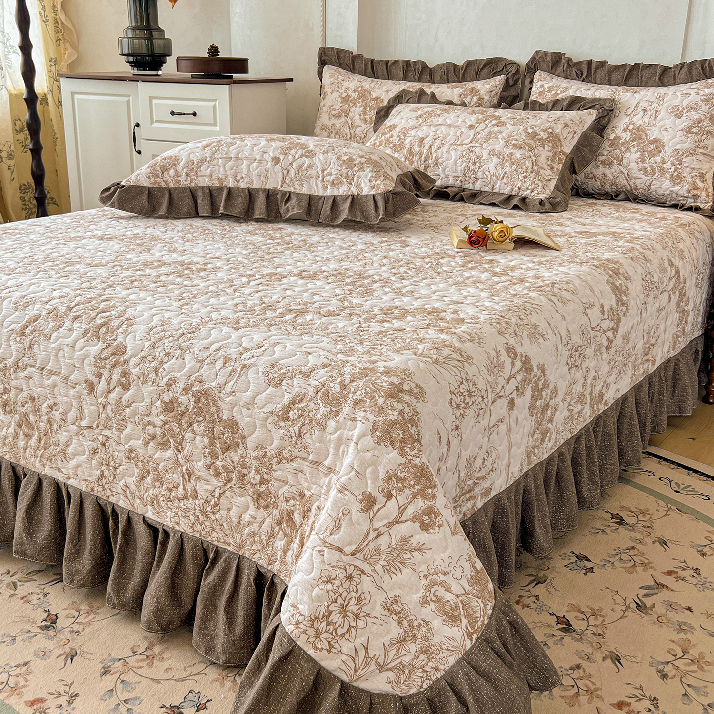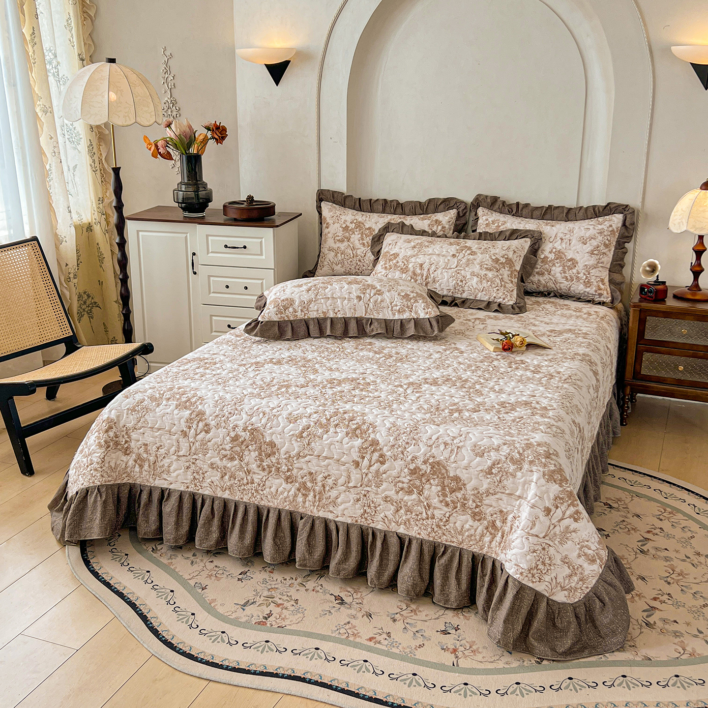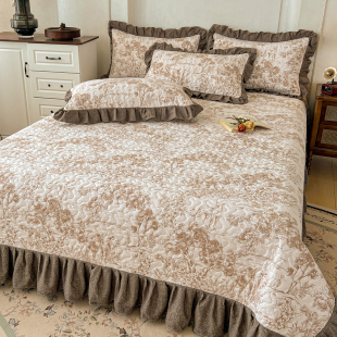 A类加厚床盖四件套法式 通用花边床品可机洗2米 复古风夹棉床单四季