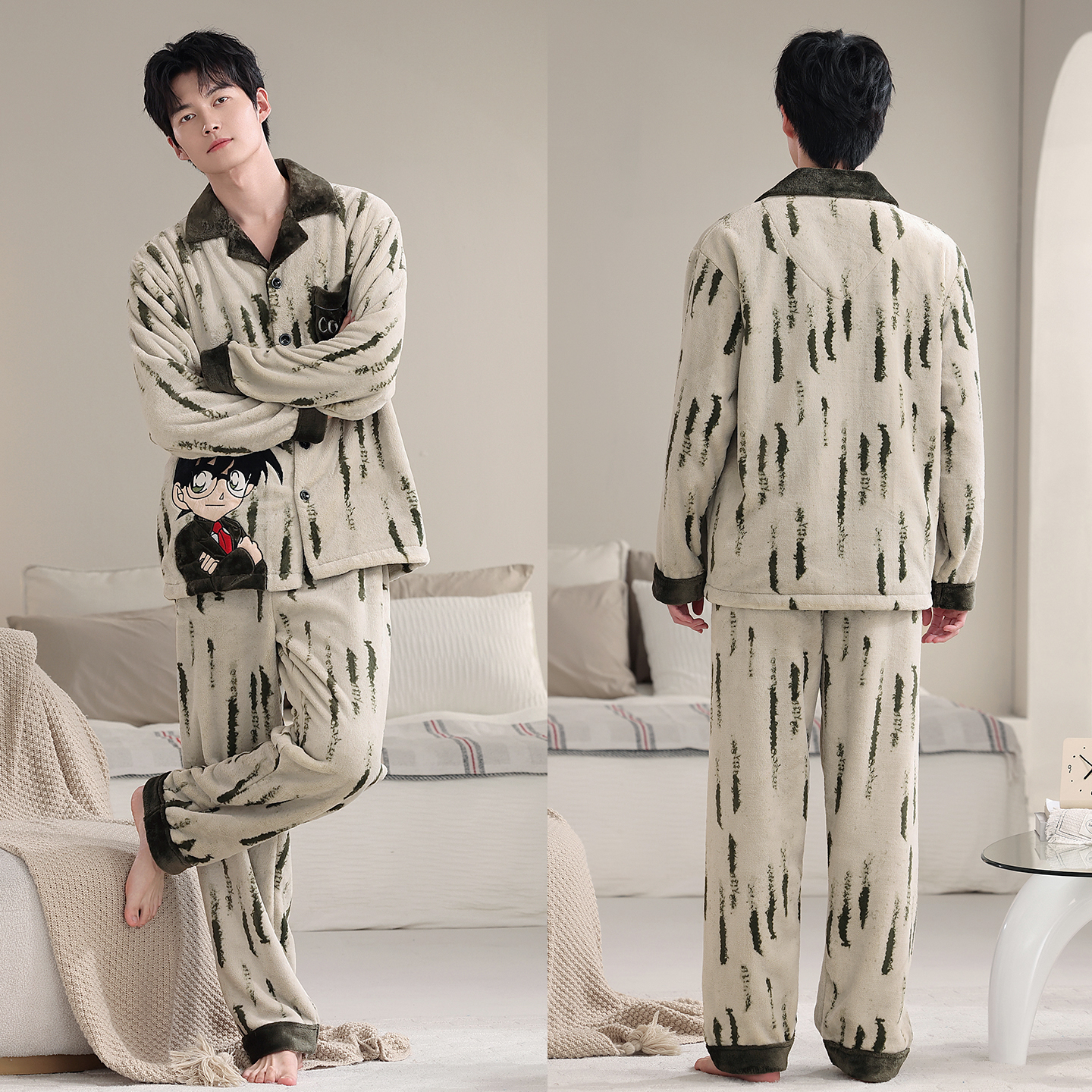 青少年学生家居服冬天 珊瑚绒加绒加厚法兰绒秋冬款 男士 睡衣冬季