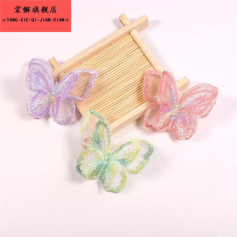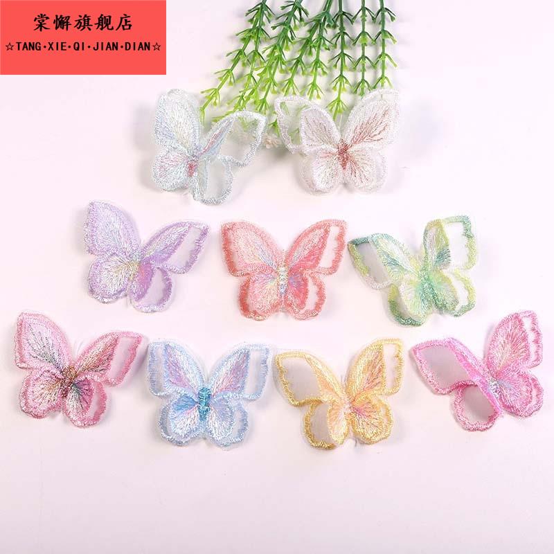 甜美少女幻彩双层蝴蝶婚纱汉服服装 辅料diy发饰配件刺绣蝴蝶布贴