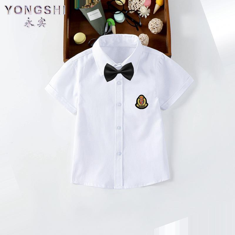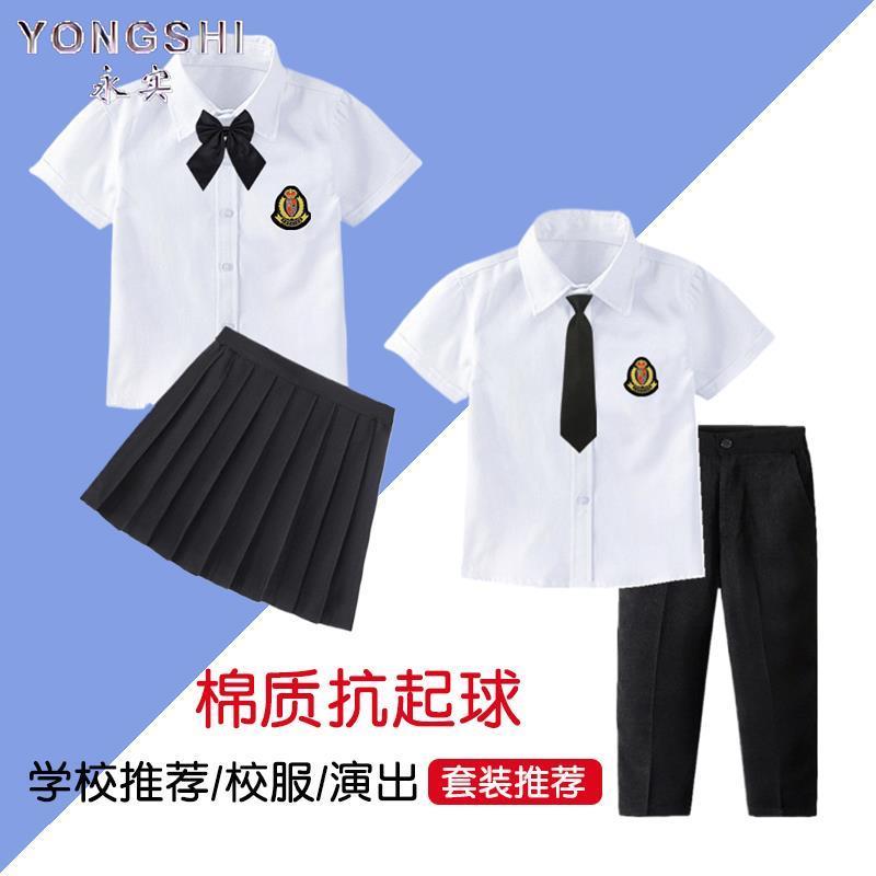 男童白色衬衣女童小女孩校服表演出服春夏上衣潮 夏季 儿童短袖 衬衫