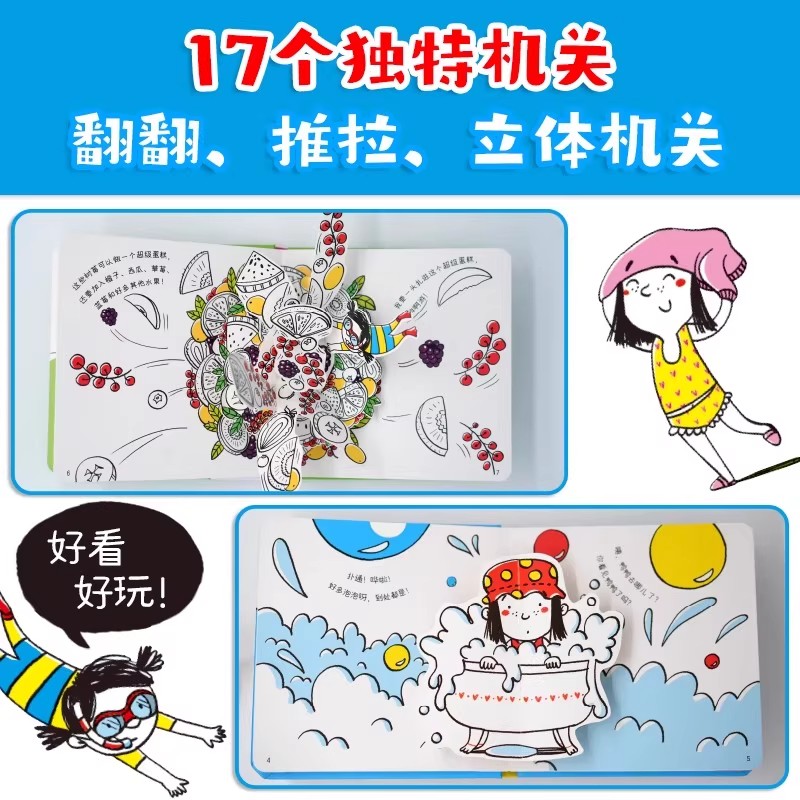 5岁儿童立体机关书幼儿园宝宝观察能力手眼协调语言启蒙游戏书幼儿早教好习惯好性格培养互动推拉翻翻书 开心果小麦系列 2册套装