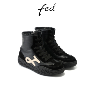 新款 S1009 女靴时尚 女款 ZC307 拳击靴高帮德训鞋 fed厚底短靴女冬季