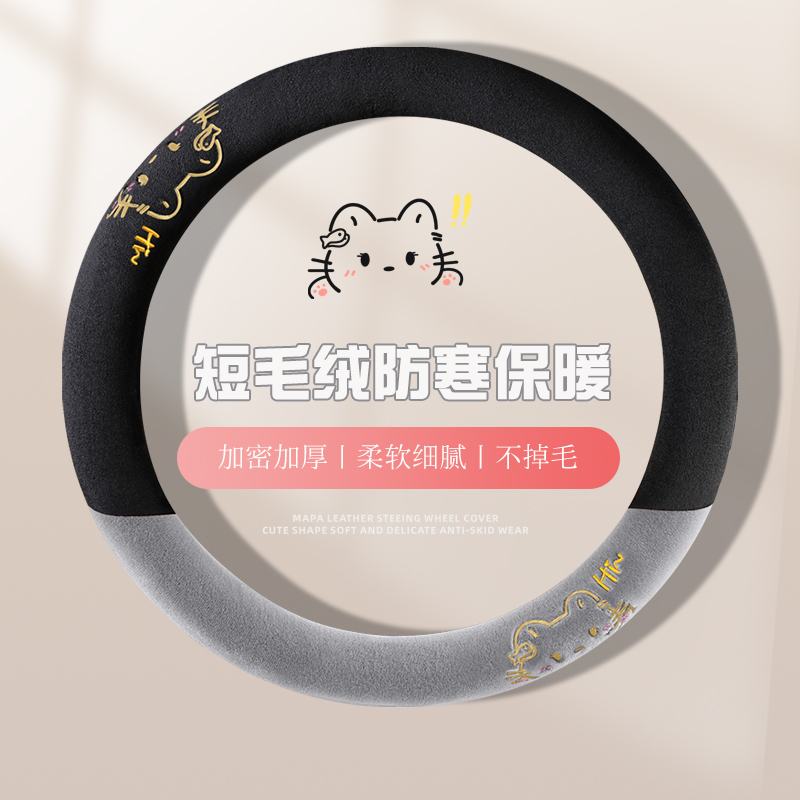 汽车方向盘套冬季 网红方向盘保护套冬天防滑保暖把套 毛绒男女新款