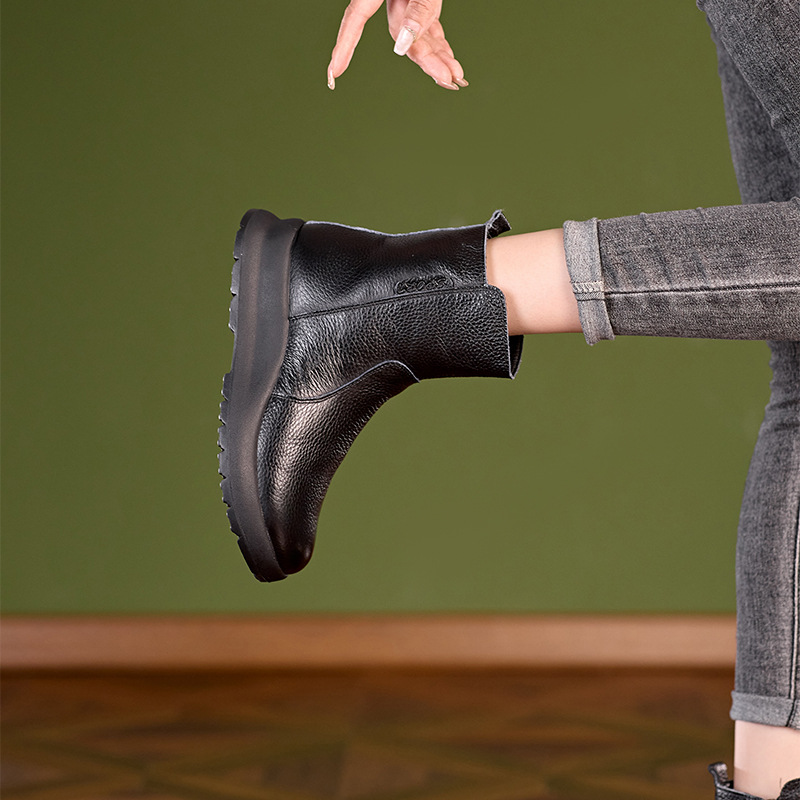 短靴妈妈鞋 秋冬真皮马丁靴女2025新款 羊毛女靴子加绒加厚休闲时尚