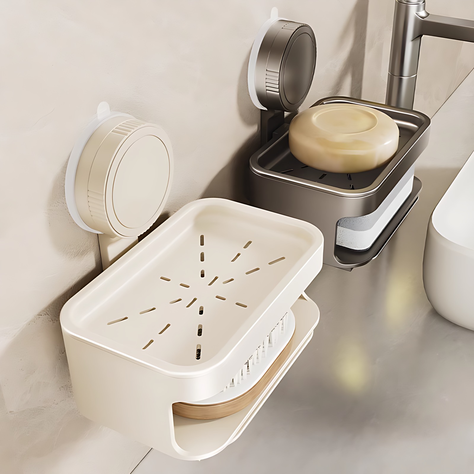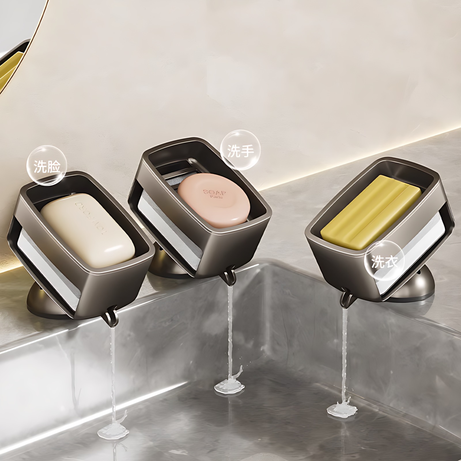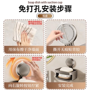吸盘肥皂盒浴室香皂盒壁挂式 免打孔卫生间置物架带沥水盒子香皂架