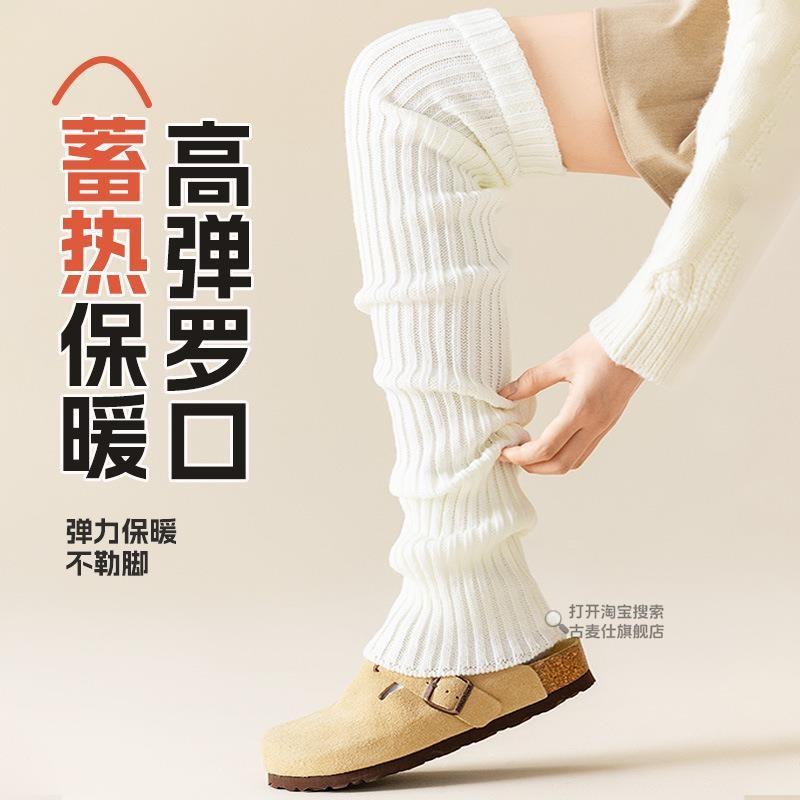 堆堆袜长筒袜女款 长袜子配长靴小腿袜jk白色纯棉靴子春秋羊毛棉袜