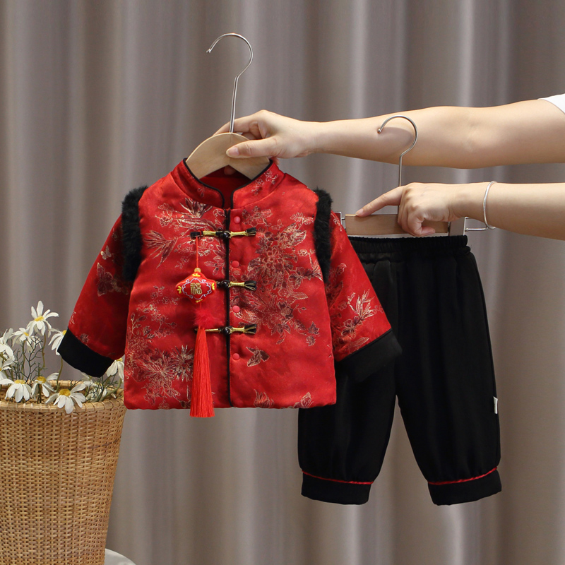 新年衣服男童拜年服 冬季 周岁礼服男宝宝新中式 抓周服婴儿生日唐装