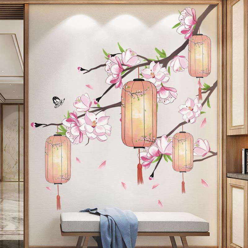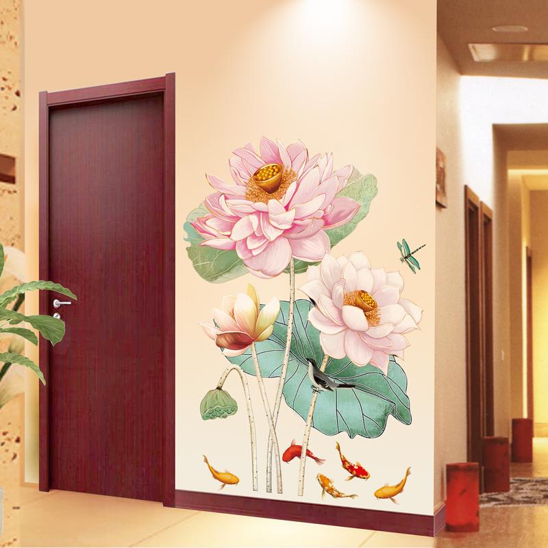 中国风电视墙背景墙贴自粘墙壁纸装 饰品荷花墙面墙上墙纸贴纸墙画