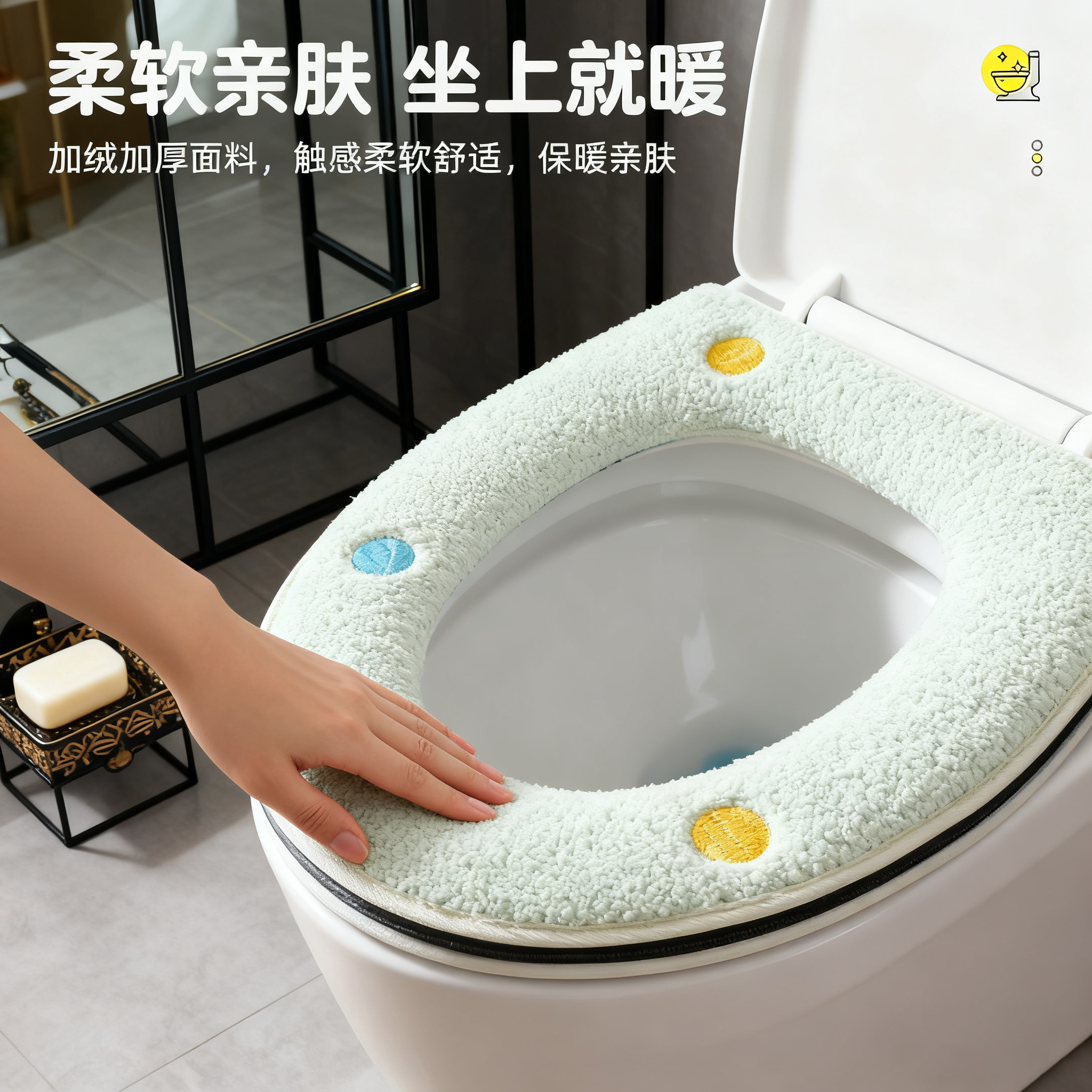 马桶坐垫冬季 马桶套厕所防冻家用毛绒坐便圈垫 加绒通用卫生间厚款