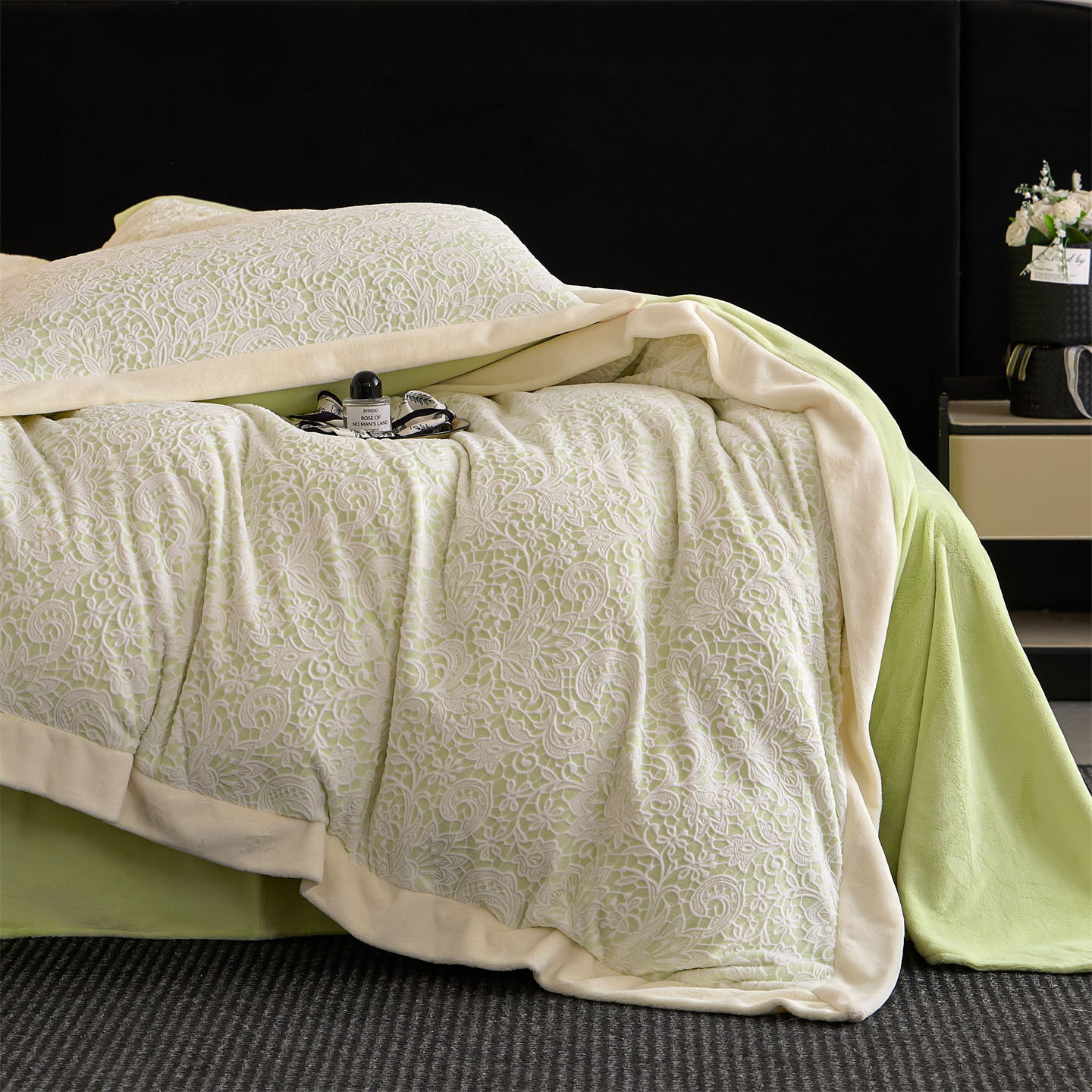 冬季 牛奶绒四件套轻奢高级感主卧室a类母婴级防静电简约风 花边款
