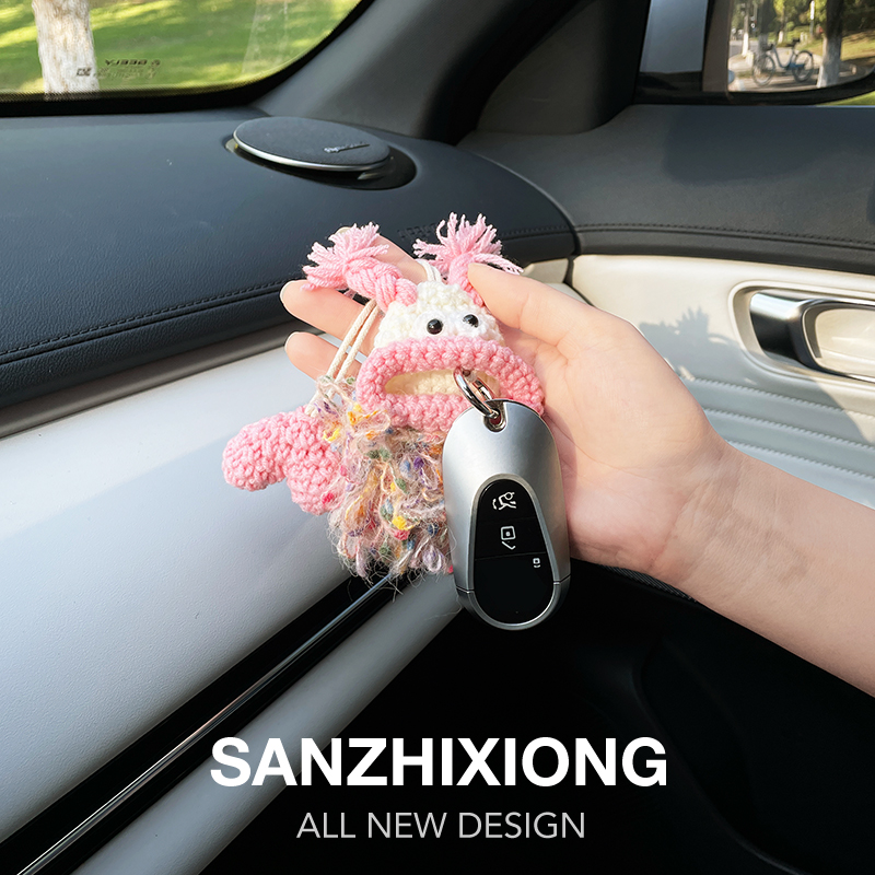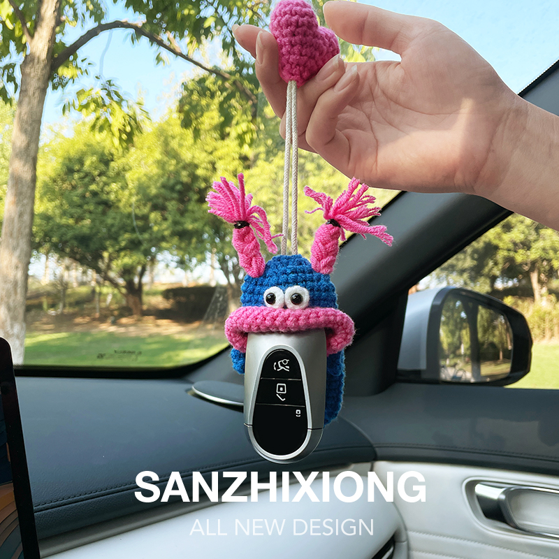 可爱香肠嘴汽车钥匙包挂件创意针织搞怪毛线车用钥匙包扣挂饰通用
