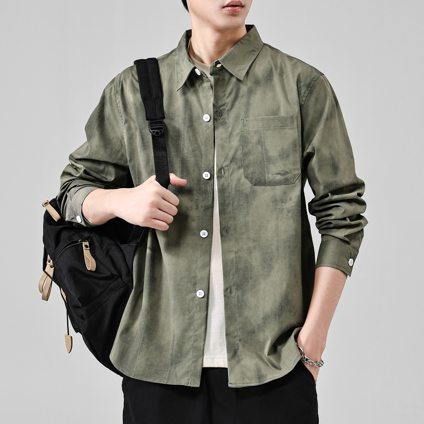 日系水洗复古潮牌痞帅工装 男2025秋季 衬衣外套 牛仔衬衫 hansca长袖