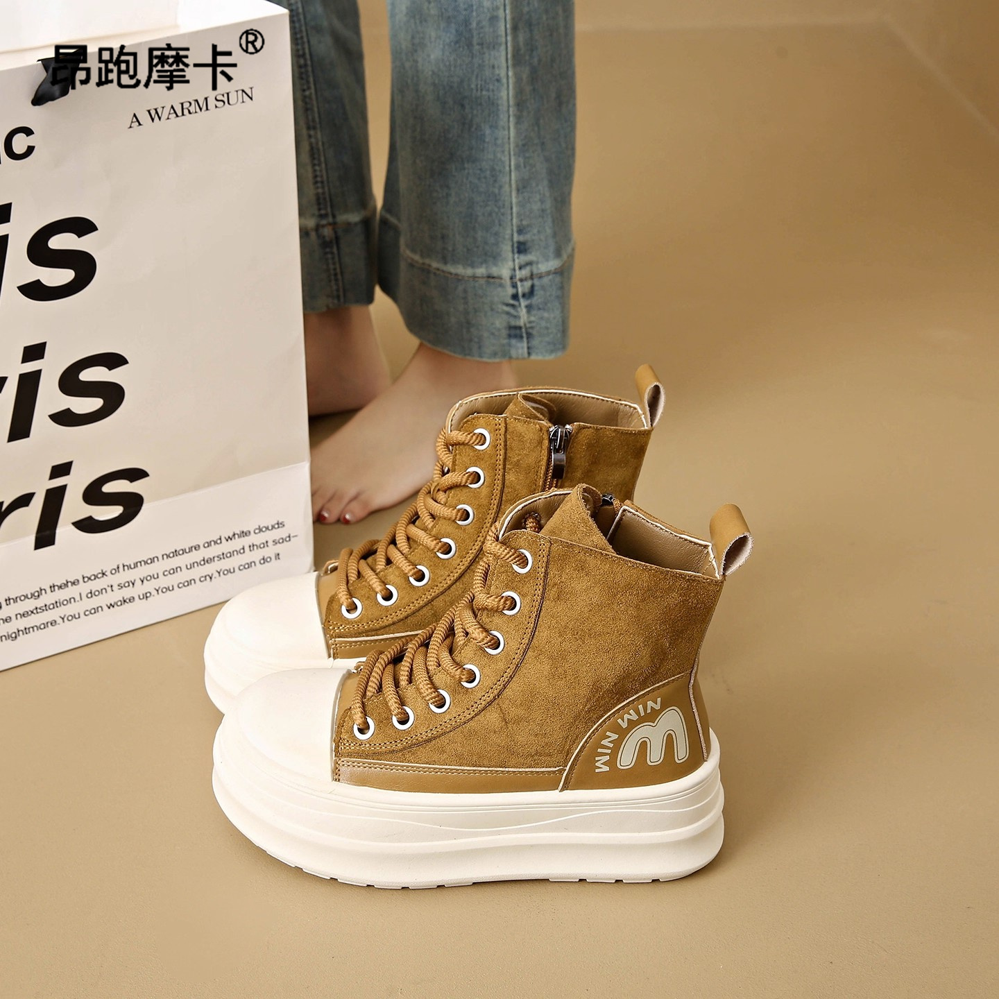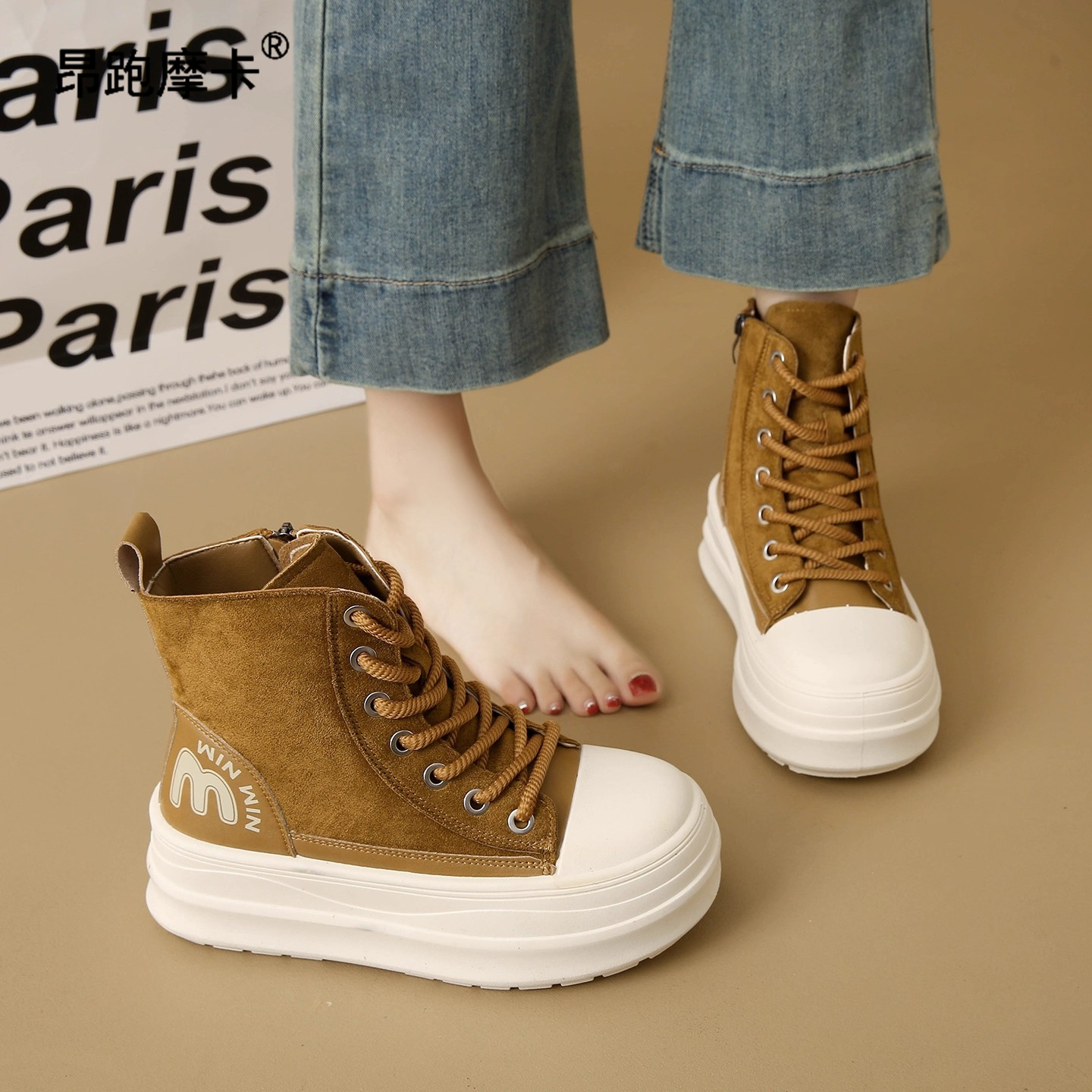室内家居包跟厚底外穿防滑加绒防水棉鞋 2025新款 女冬季 高帮棉拖鞋