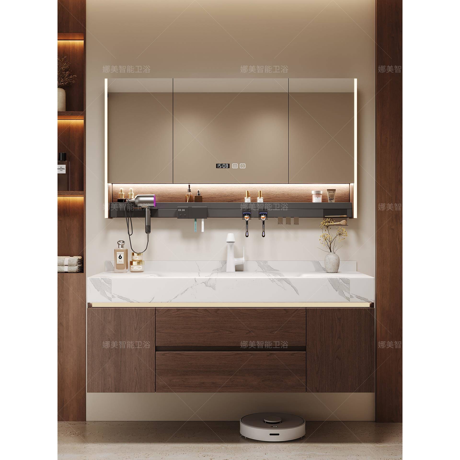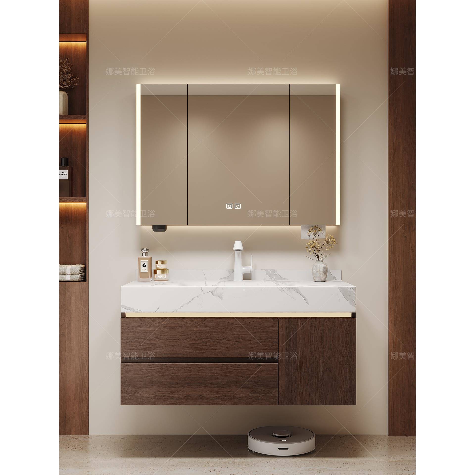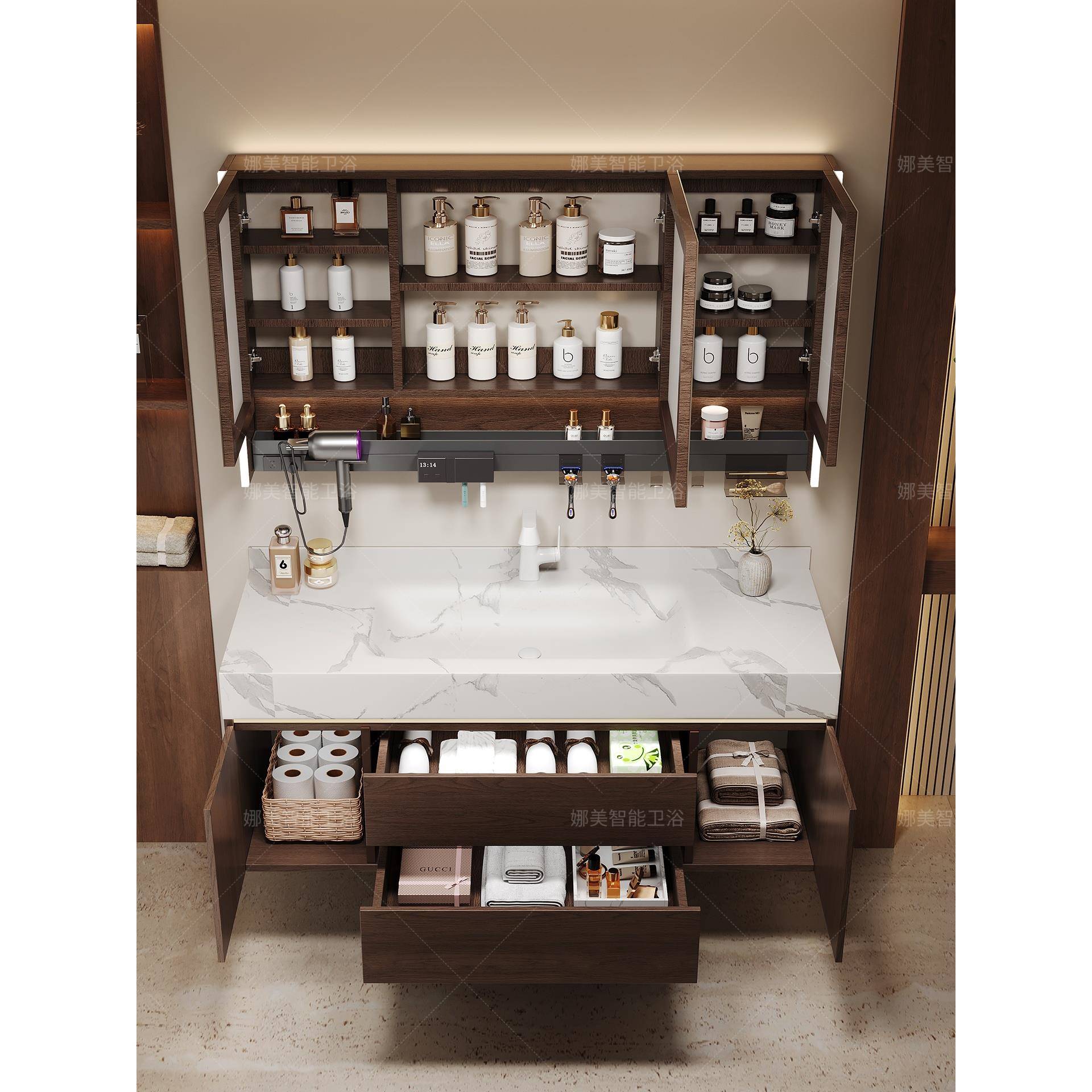 2025新款 浴室柜组合岩板热弯一体台盆中古风卫生间洗手漱洗脸卫浴