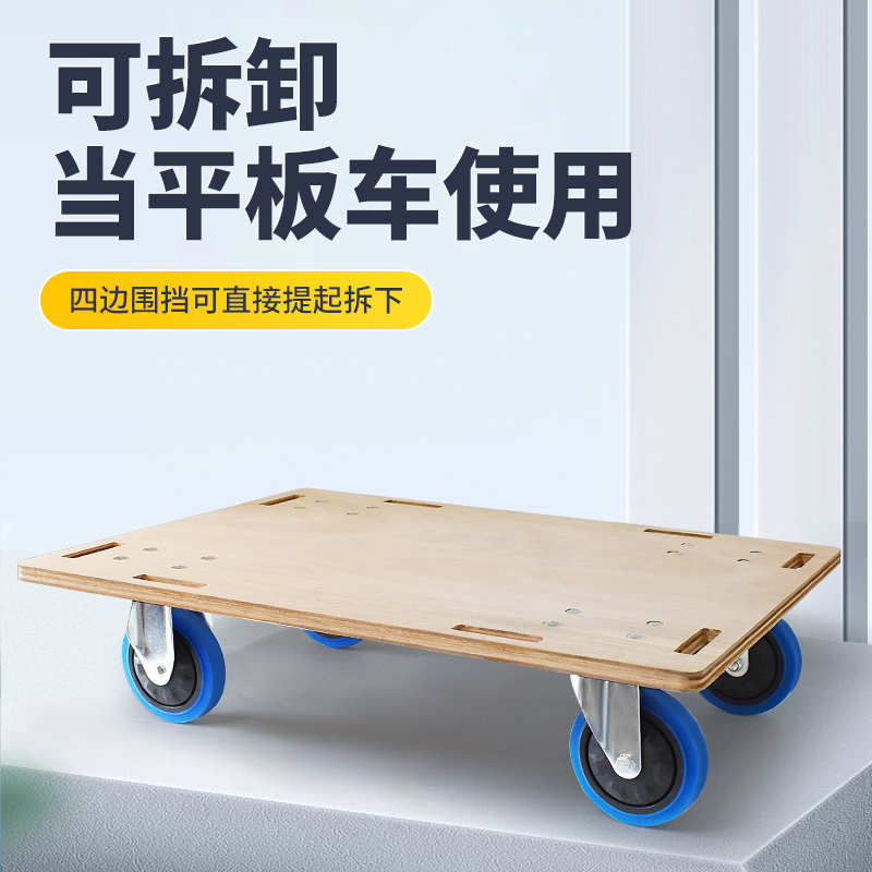 围栏手推车木板车乌龟车平板小推车周转车万向轮拉货车轻音木箱带