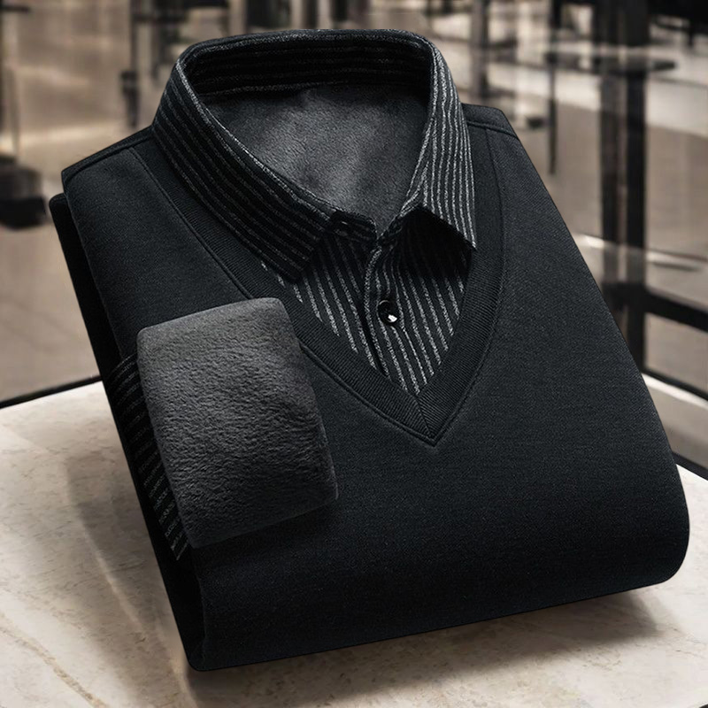 男款 衬衫 假两件加绒加厚打底商务针织衫 保暖秋冬季 上衣 领毛衣男士