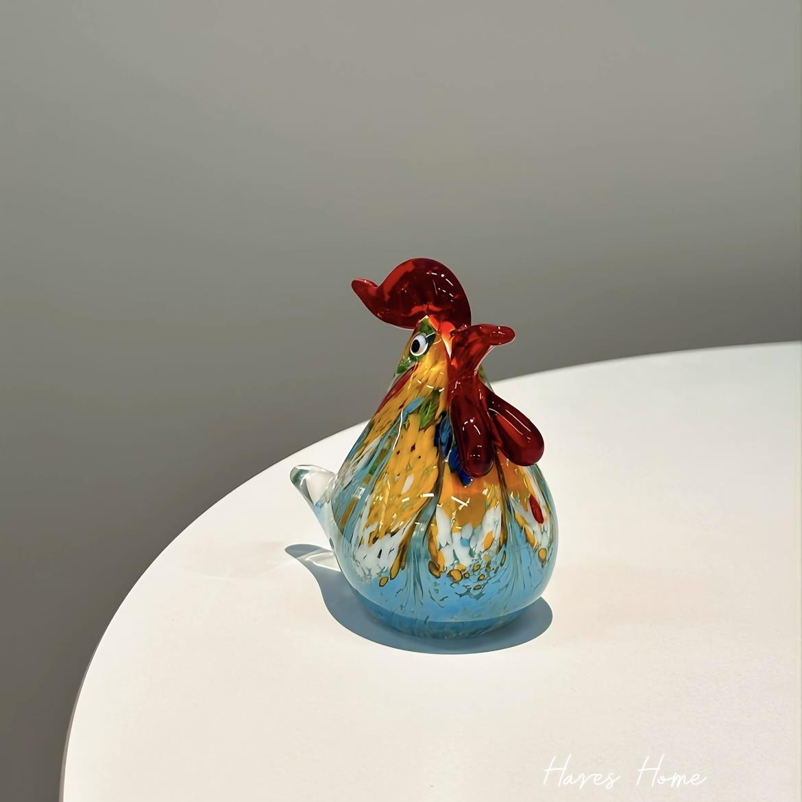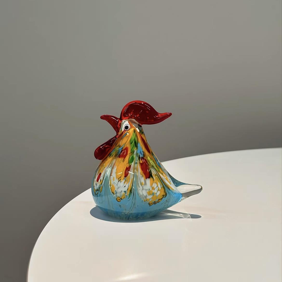 开运红公鸡琉璃摆件淄博手工制作高档工艺品家居客厅造景装 饰礼物