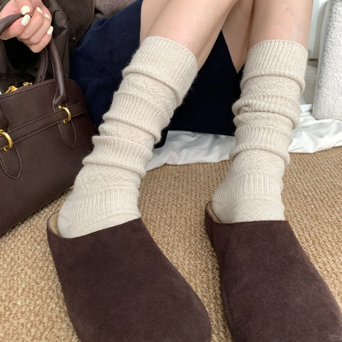 灰色长袜配靴子 搭配袜子秋冬长筒袜女款 白色小腿袜2025新款 勃肯鞋