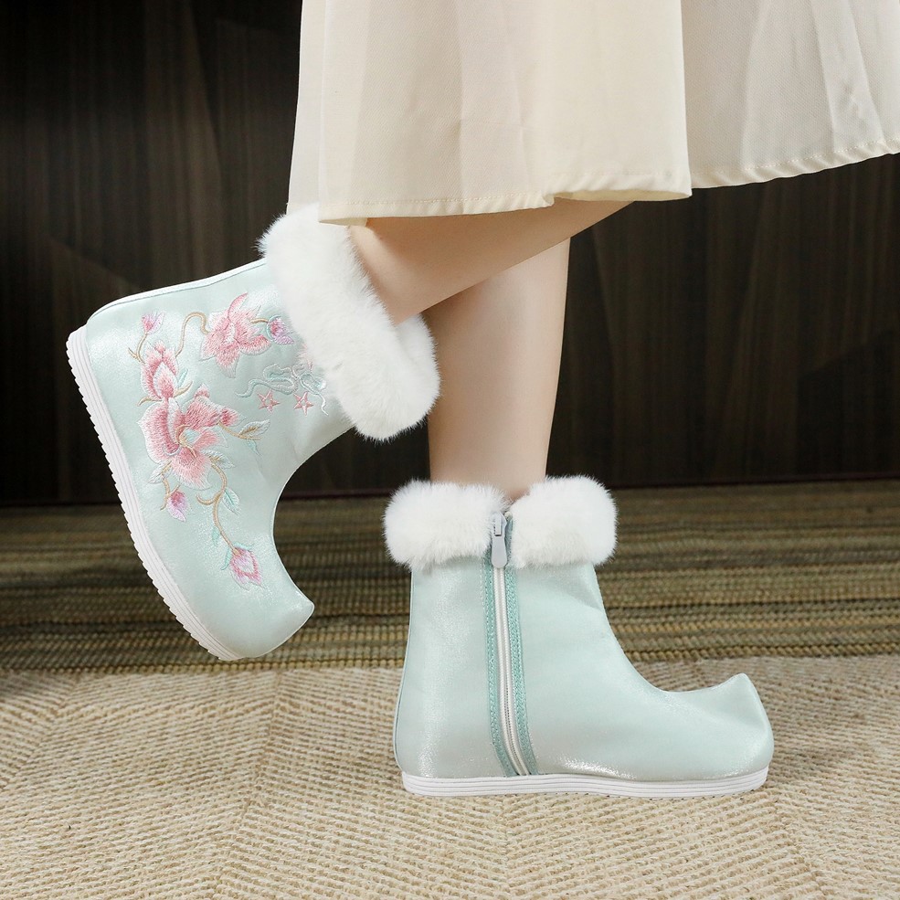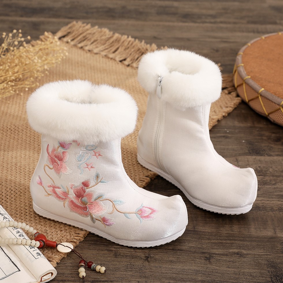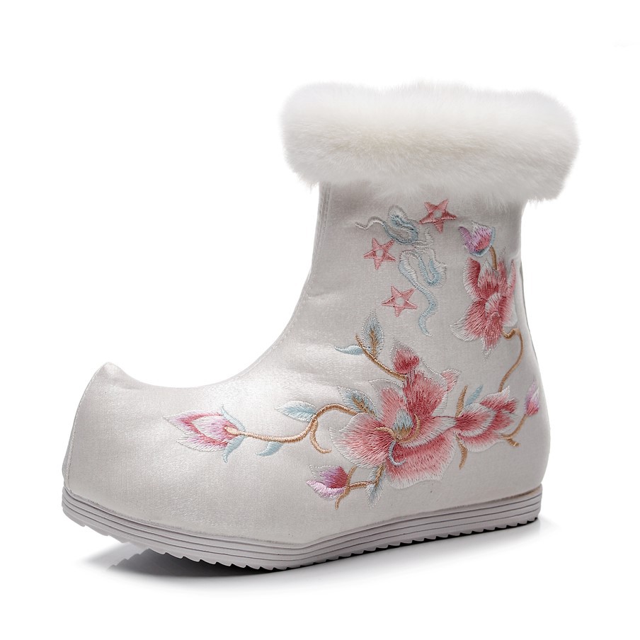 短靴复古绣花靴搭配汉服 高帮民族风女鞋 艺雅棉靴 秋冬老北京布鞋