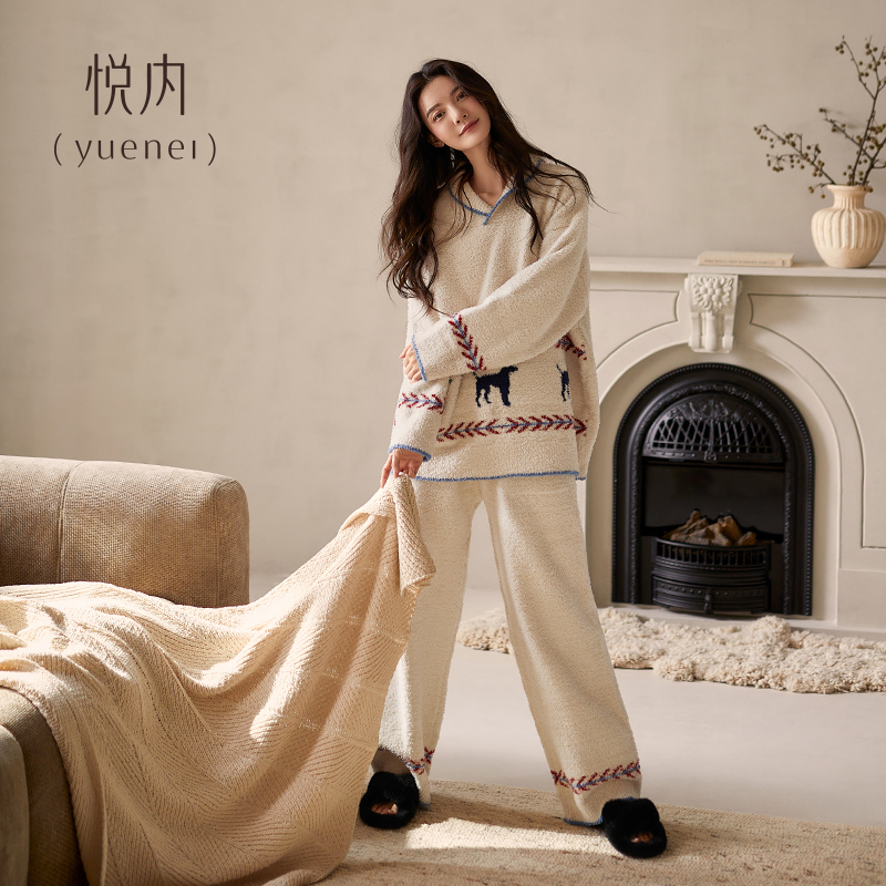 秋冬季 2025新款 猫人半边绒家居服套装 男女睡衣可外穿 肖战同款