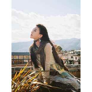 废土风棉麻围巾女春秋薄款 西北沙漠云南旅游覆古文艺丝巾防晒披肩