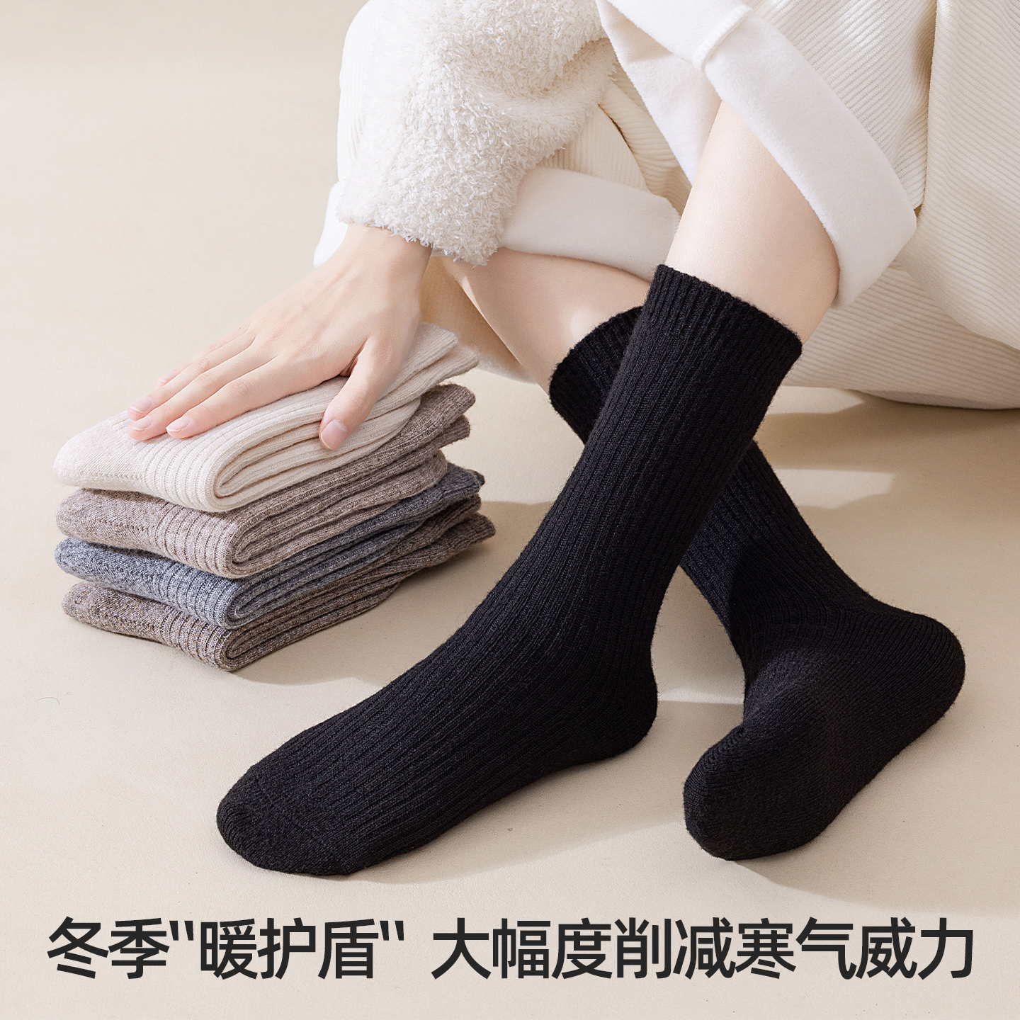 秋冬季 爆款 加绒加厚保暖中筒袜居家月子长袜 2025新款 羊毛袜子女款