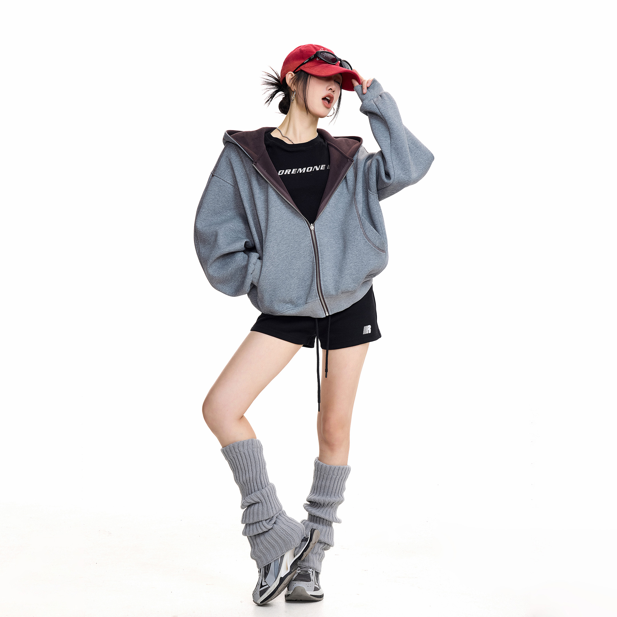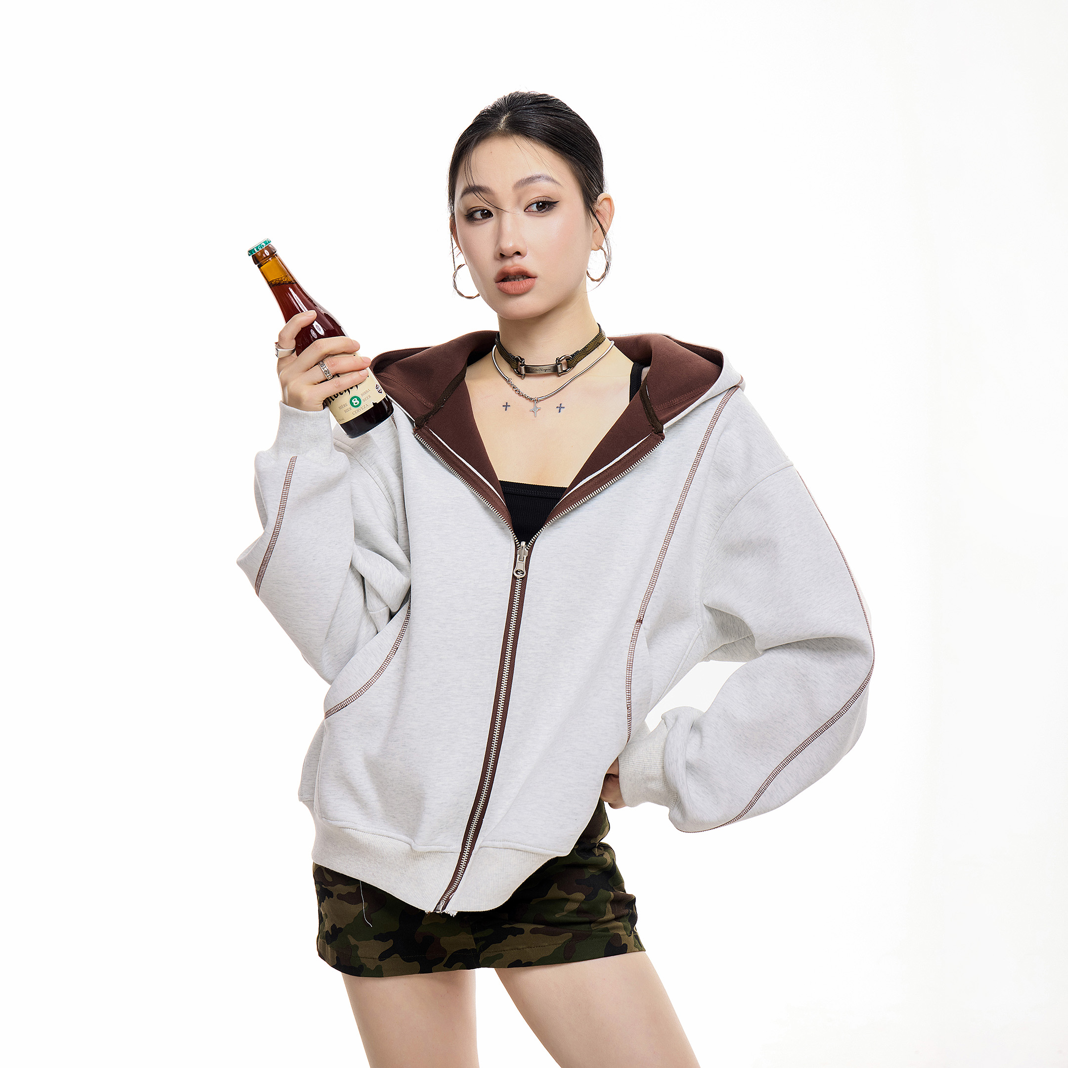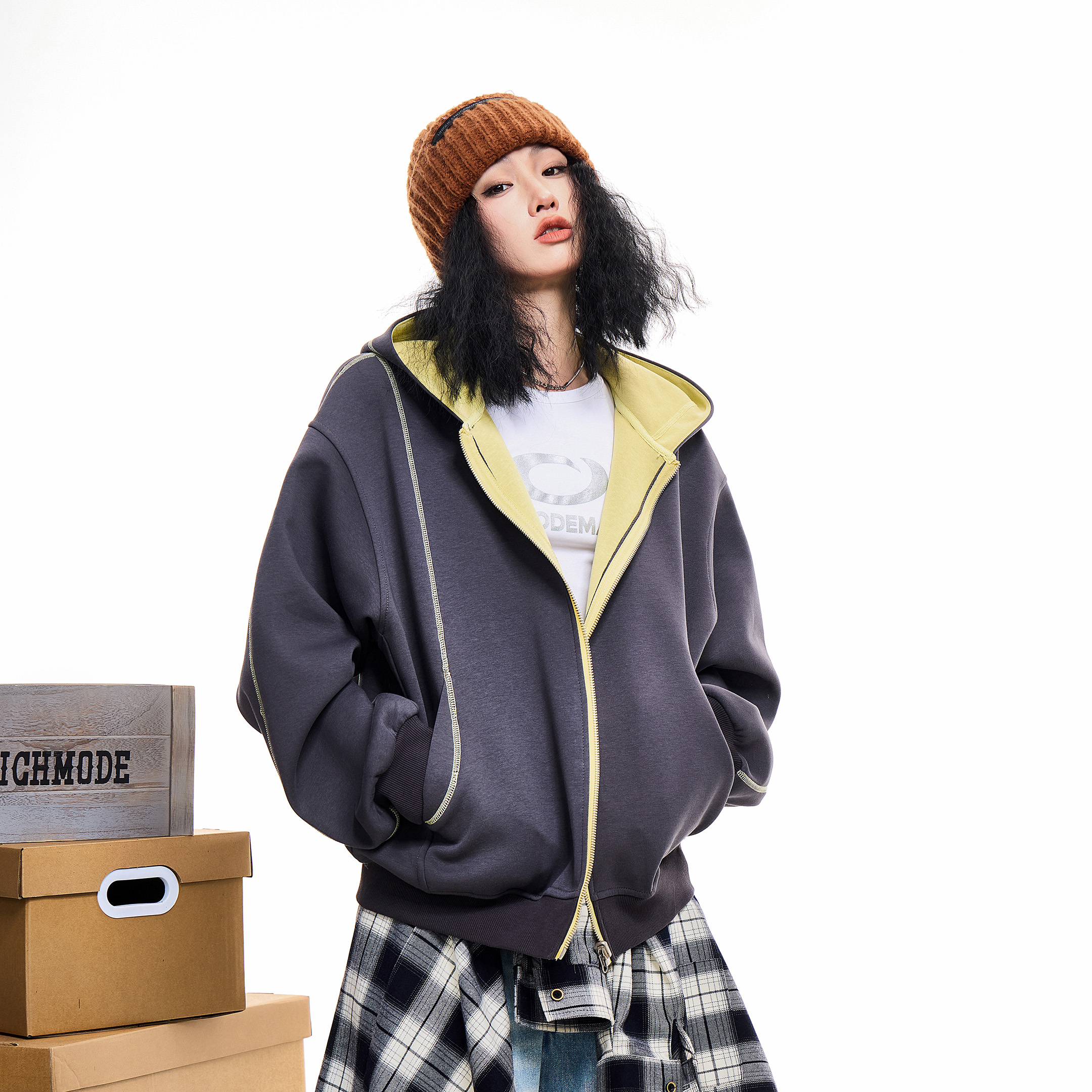 开衫 卫衣女廓形百搭宽松复古秋季 外套 MODE撞色潮酷设计感美式 ICH