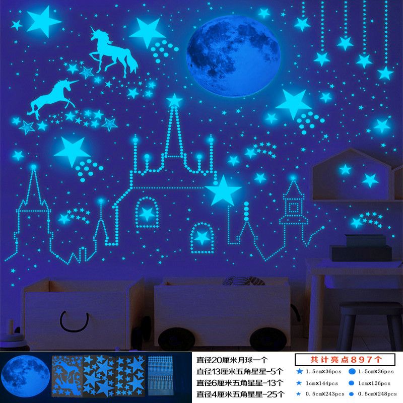 夜光星星贴纸发光贴纸遮丑神器客厅顶部自粘墙贴荧光星星夜光星空