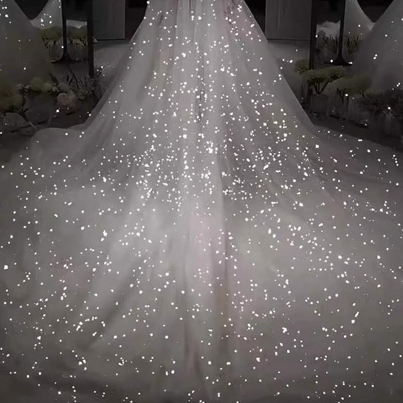 好货星空头纱新娘结婚主婚纱配饰超闪细闪粉双层超长拖尾结婚超仙