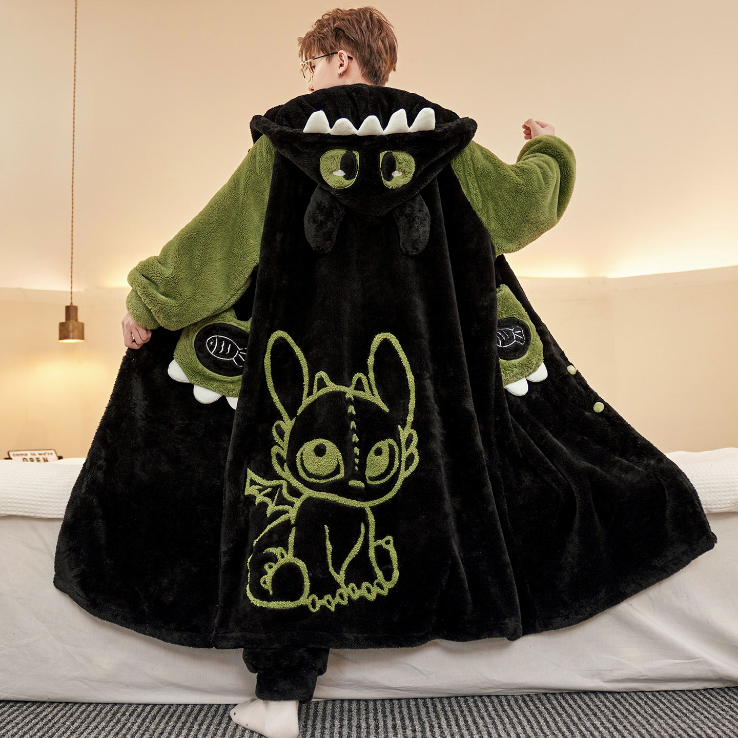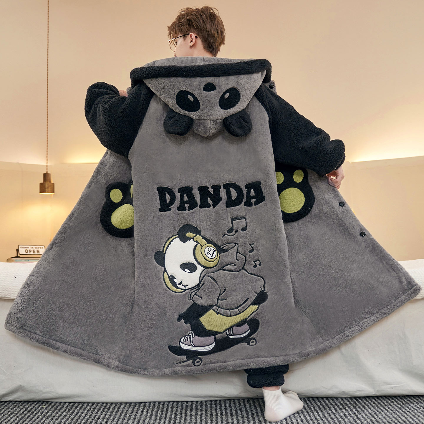 浴袍小黑猫家居服 加厚加绒睡衣青少年长款 珊瑚绒男款 睡袍秋冬季