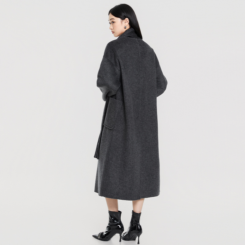 高个子双面呢加长款 高级感毛呢外套 羊绒大衣女2024秋冬过膝加长款