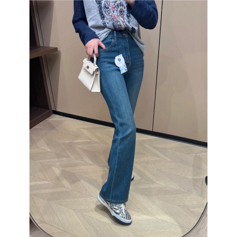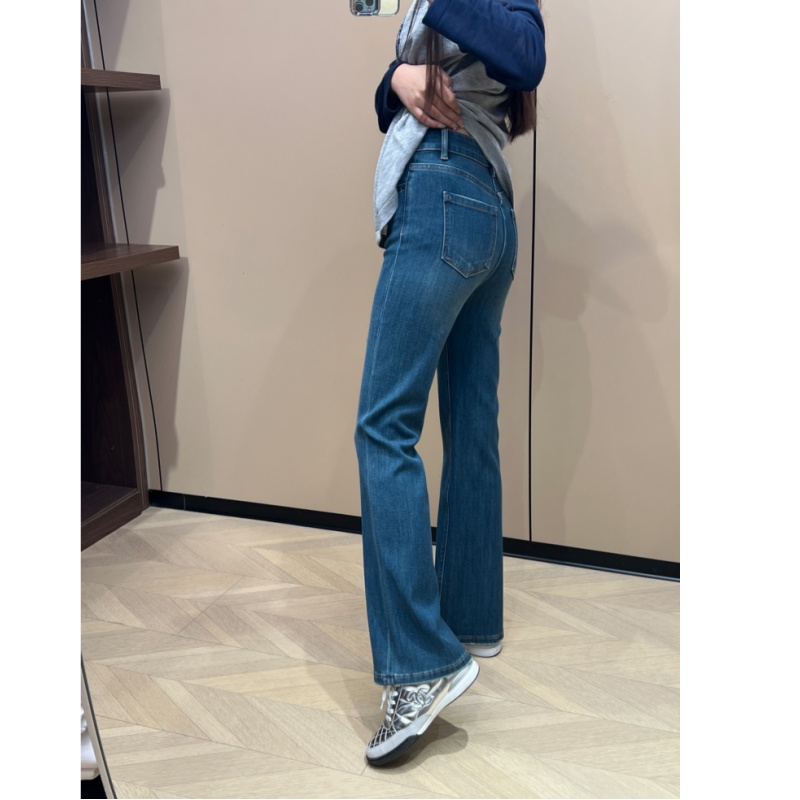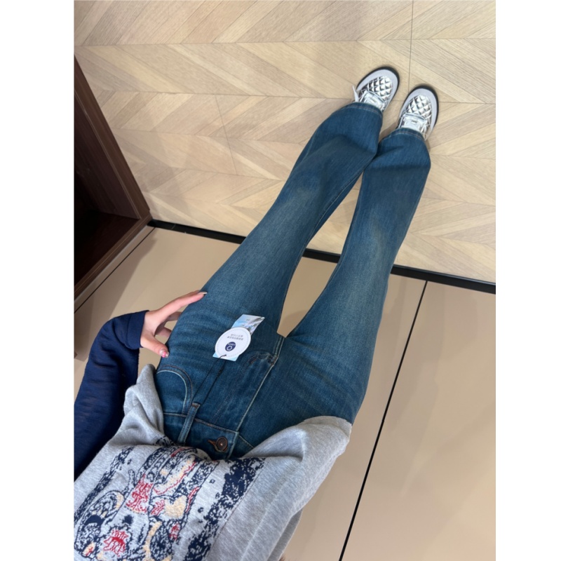加绒高腰显瘦梨形身材弹力喇叭裤 新款 子 女秋季 复古蓝色微喇牛仔裤