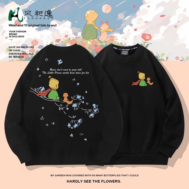 MardiMercredi经典 小雏菊圆领印花休闲卫衣男女宽松上衣可露丽风
