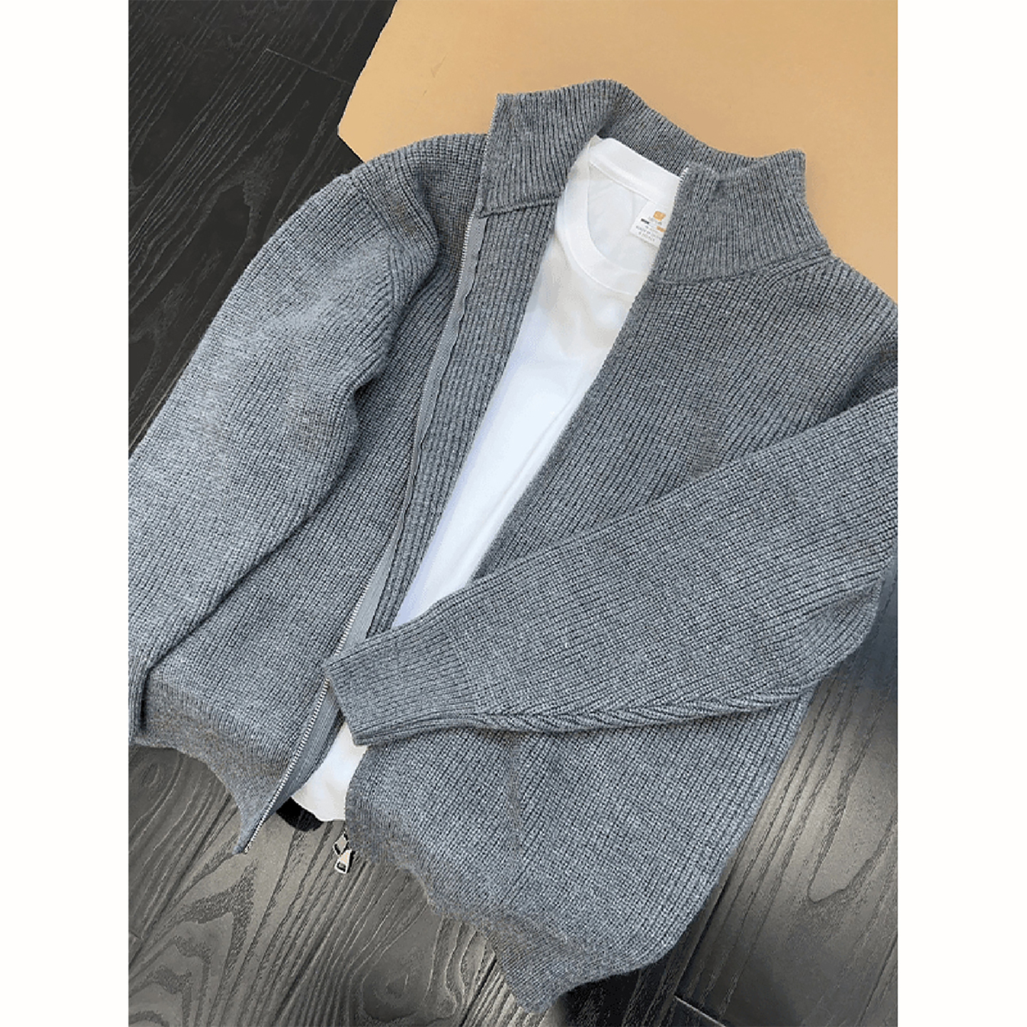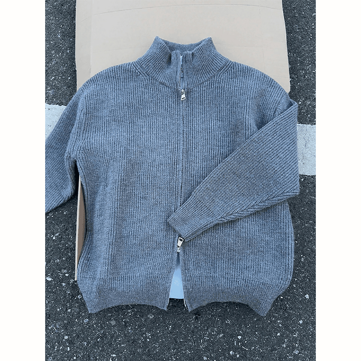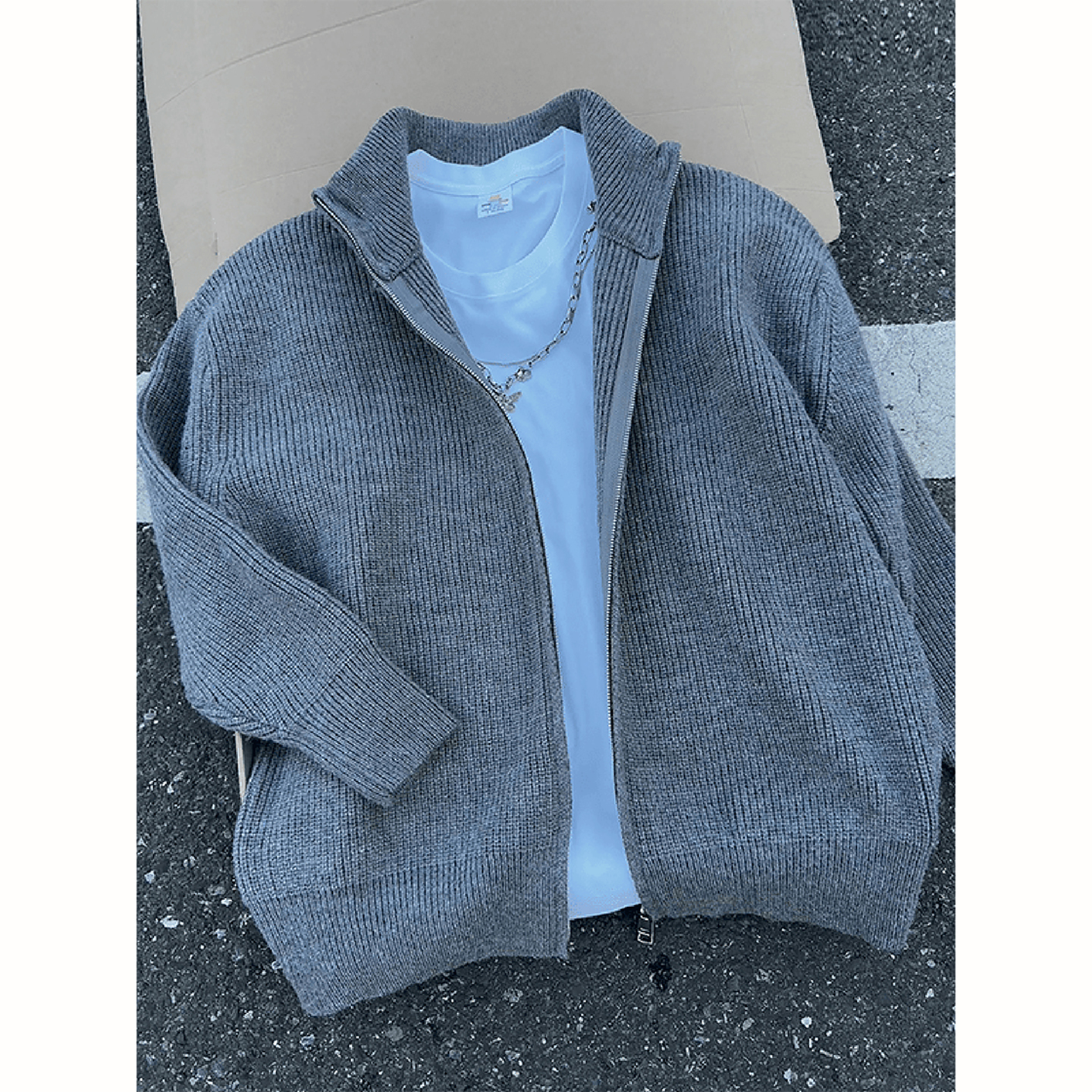休闲针织衫 CHINISM赤尘 美式 毛衣男冬季 外套 灰色简约立领拉链开衫
