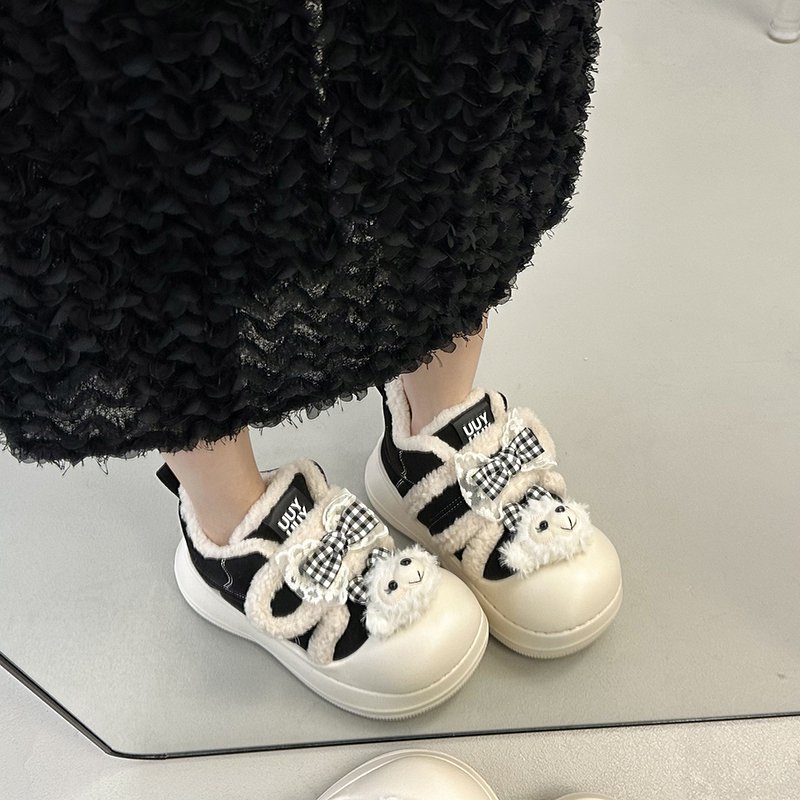 保暖加绒面包鞋 防水短筒增高棉鞋 新款 松糕厚底雪地靴女2025年冬季