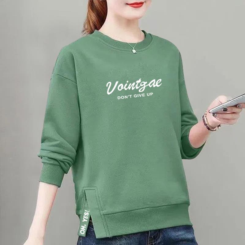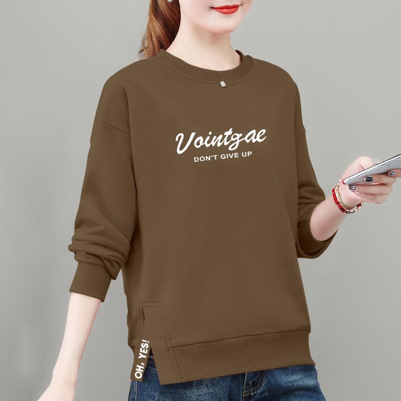 卫衣女秋冬新款 宽松咖色上衣外套1008e 字母印花圆领开叉漂亮时尚