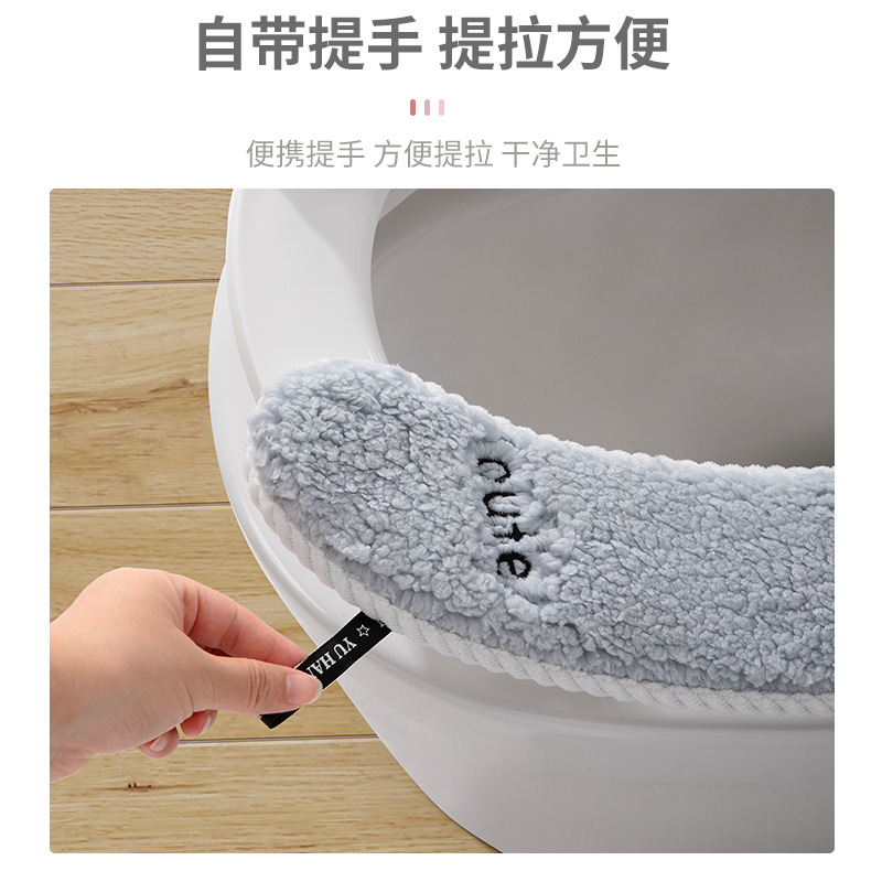 简约小狗羊羔绒粘扣式 马桶垫卡通坐便垫通用防水厕所坐便套马桶套